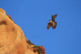 Both adult peregrines were on the wing again today. Other observers identified the lighter one as the male. At least two juveniles were also visible.