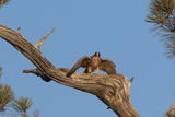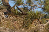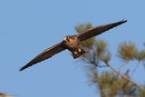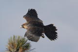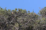 I almost didn't go out today because of a poor weather forecast calling for AM drizzle and no clearing until 3P. The clouds didn't materialize and it turned out to be a beautiful afternoon into sunset, and the peregrines were busy. The adults were flying up and down the length of the cliffs, at times with juveniles in tow. Late in the afternoon, all the juveniles rested in pine trees along the trail.