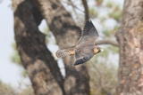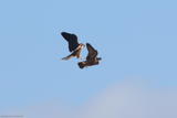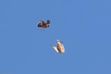 The pigeon (right) tries to escape a falcon.