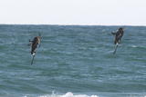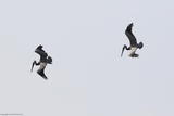 The pelicans were actively diving today, including a pair that kept doing synchronized dives. Reports are 4 peregrine chicks this year; I saw three of them today.