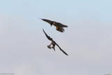 (5:32p) Mom and at least one juvenile hanging out in a distant pine tree |
