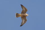 The sun came out in the afternoon, so I visited the beach. Of course, most of the action looked like it was up on the trail. From below, the occasional single juvenile would circle out away from the cliff every now and then. The clouds were starting to move in by around 6:30 when the action picked up. A food exchange apparently occurred near the south overlook, because a juvenile came flying north from there with food.