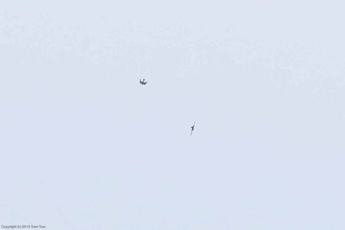 (9:03a) One of the adults flew way out over the ocean and started diving. Not clear if the other bird is the other adult.