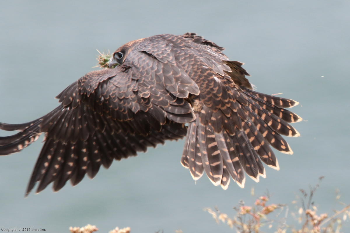 Not sure if it's carrying or got stuck by the cactus, but it flew away in an agitated, unhappily squawking way.