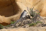 For a while, it seemed like nothing was going to happen again today. After sitting around for an hour, the female flew in the nest cave and called to the male, but he ignored her. They finally mated half an hour later, after which the male retrieved a pigeon and refused to share it.