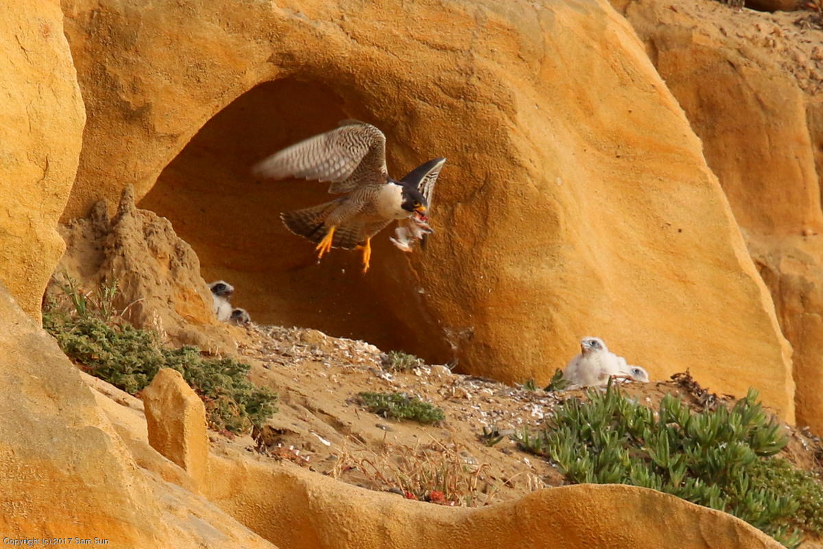 (6:56p) Mom leaves with the scraps as 4 (!) chicks look on.