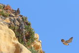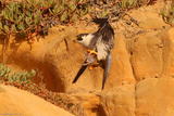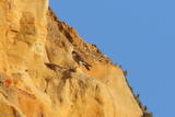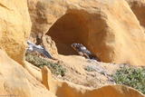 A nice sunny, but slow, afternoon. Very little happened for 2 hours. When Dad returned empty-handed, Mom went and fetched some scraps from a stash to feed the chicks. She then seemed to go exploring nooks along the cliff... I think the pantry's empty.