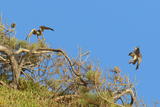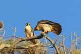 A nice afternoon. The male came in with food just as I was arriving. He brought in another kill later on and took it south to pluck/eat. Eventually the female went to fetch it and got an aerial food exchange.