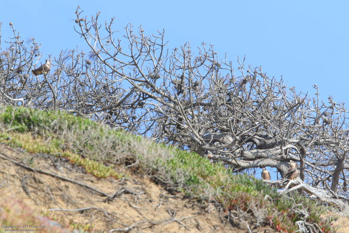 (4:40p) 4 juveniles perched in a tree.
