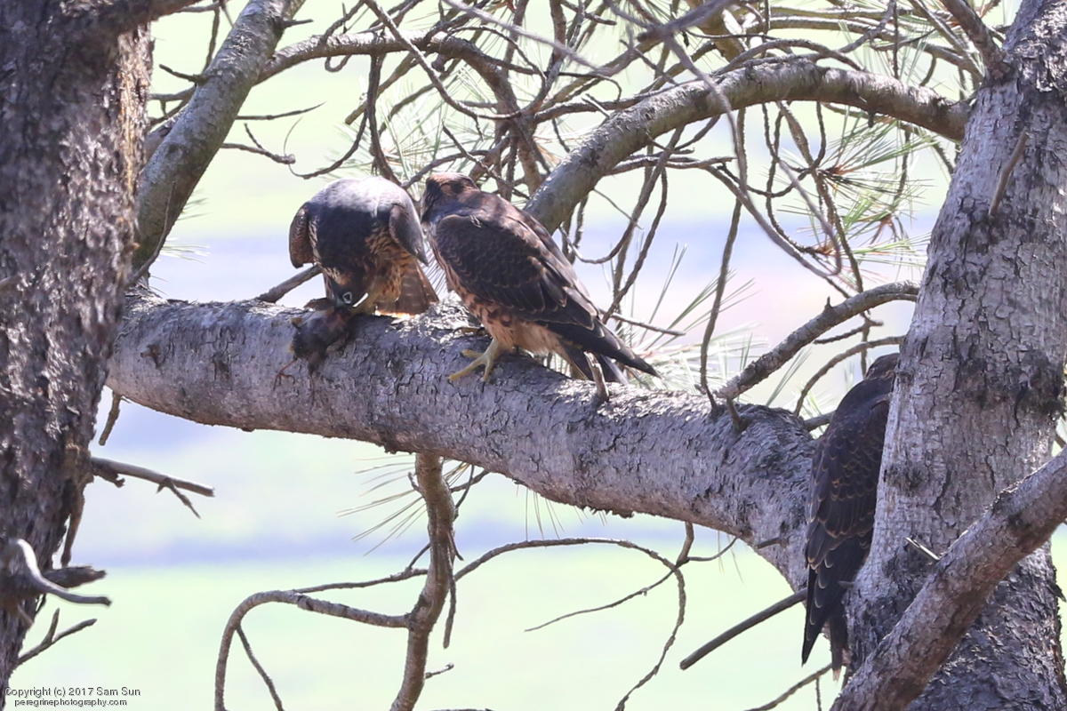 (9:11a) A few minutes later, they were back in the tree. One with food was playing keep away from the others.