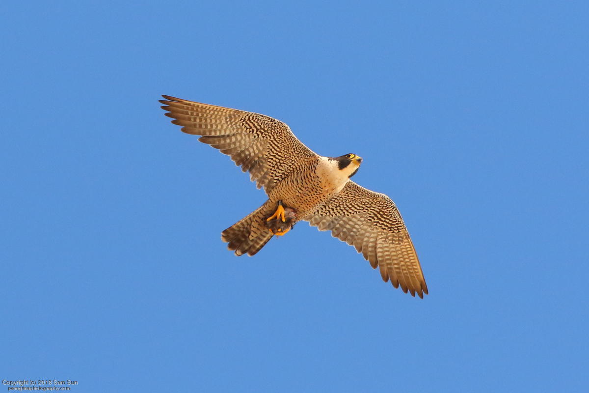 (6:23p) The female is flying around dangling food, but not calling.