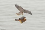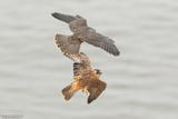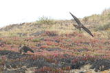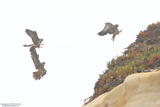 I went out for the morning low tide, hoping the juveniles might visit the beach. They sat up on the cliffs for a while, then started dogfighting. There was one likely feeding from the male.