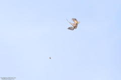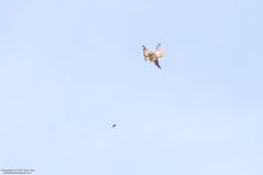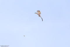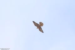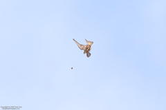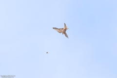 The family flew around together for a while today. The juvenile possibly took a food transfer in the afternoon, wound up dropping and retrieving it. Later on, it did some soaring along the cliffs and tried to grab some bees.