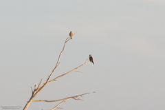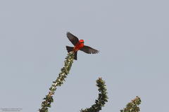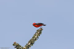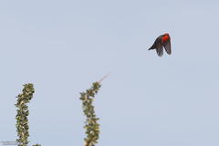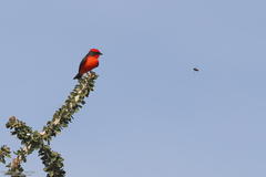 Vermillion Flycatcher with a finch