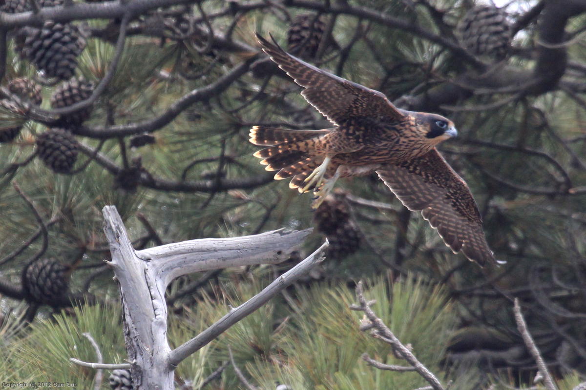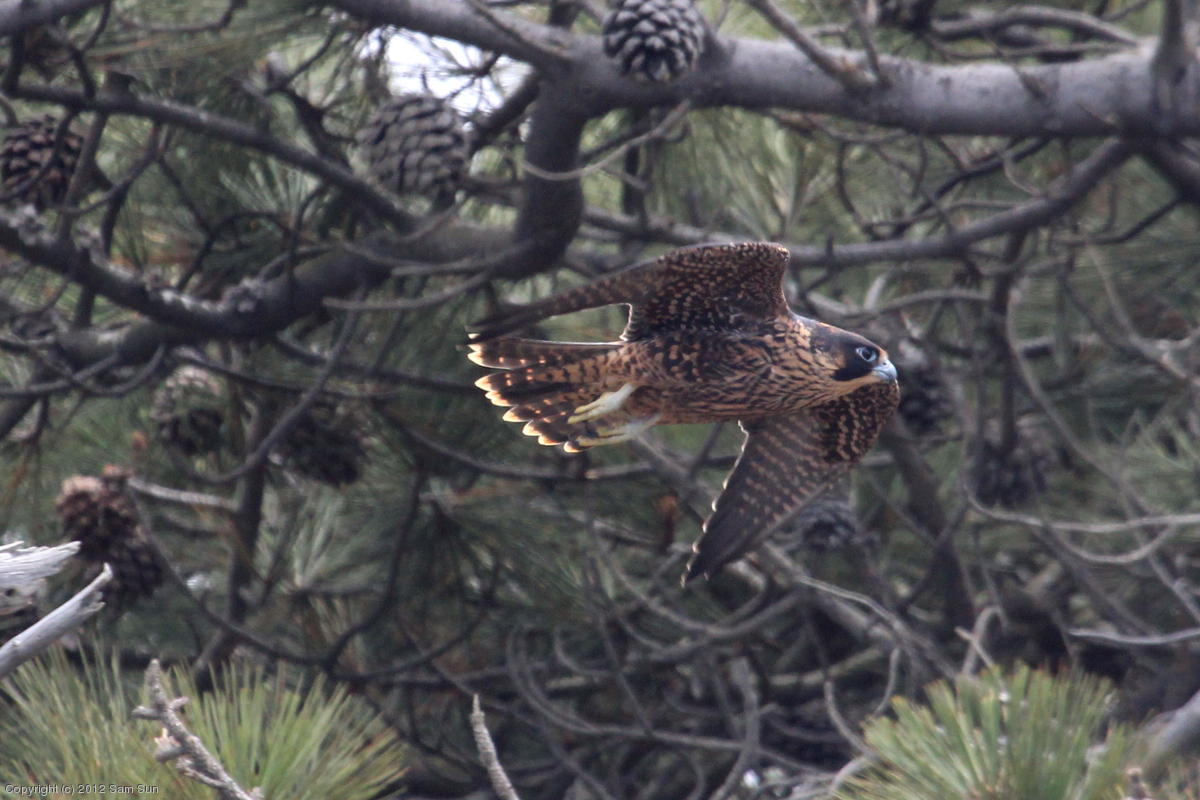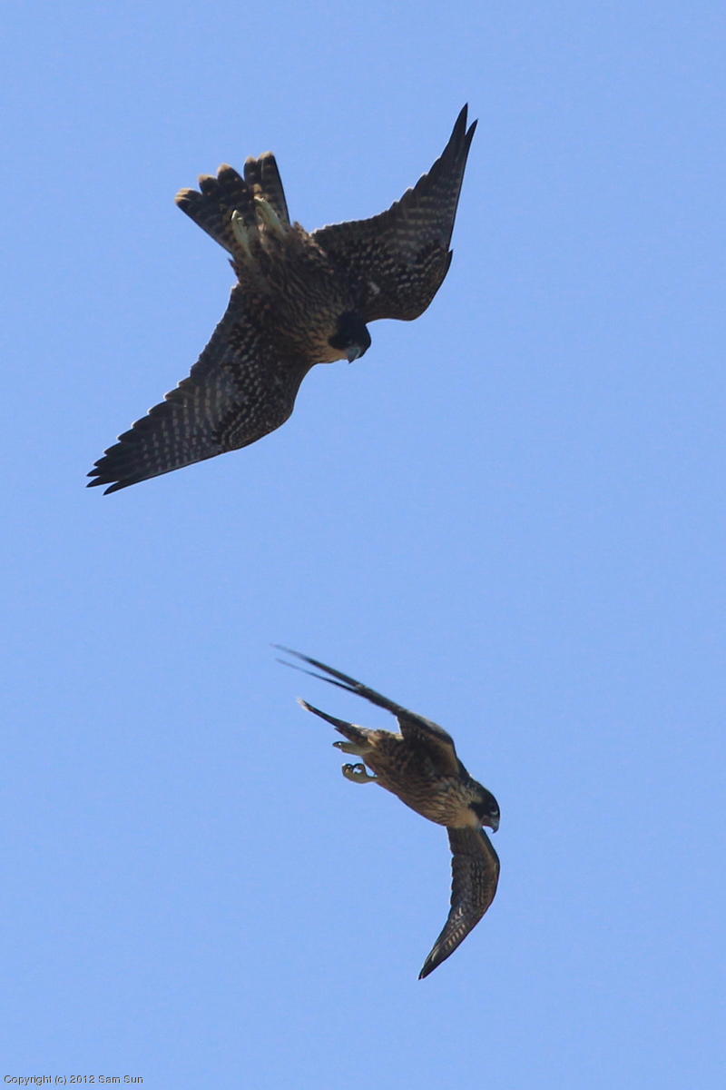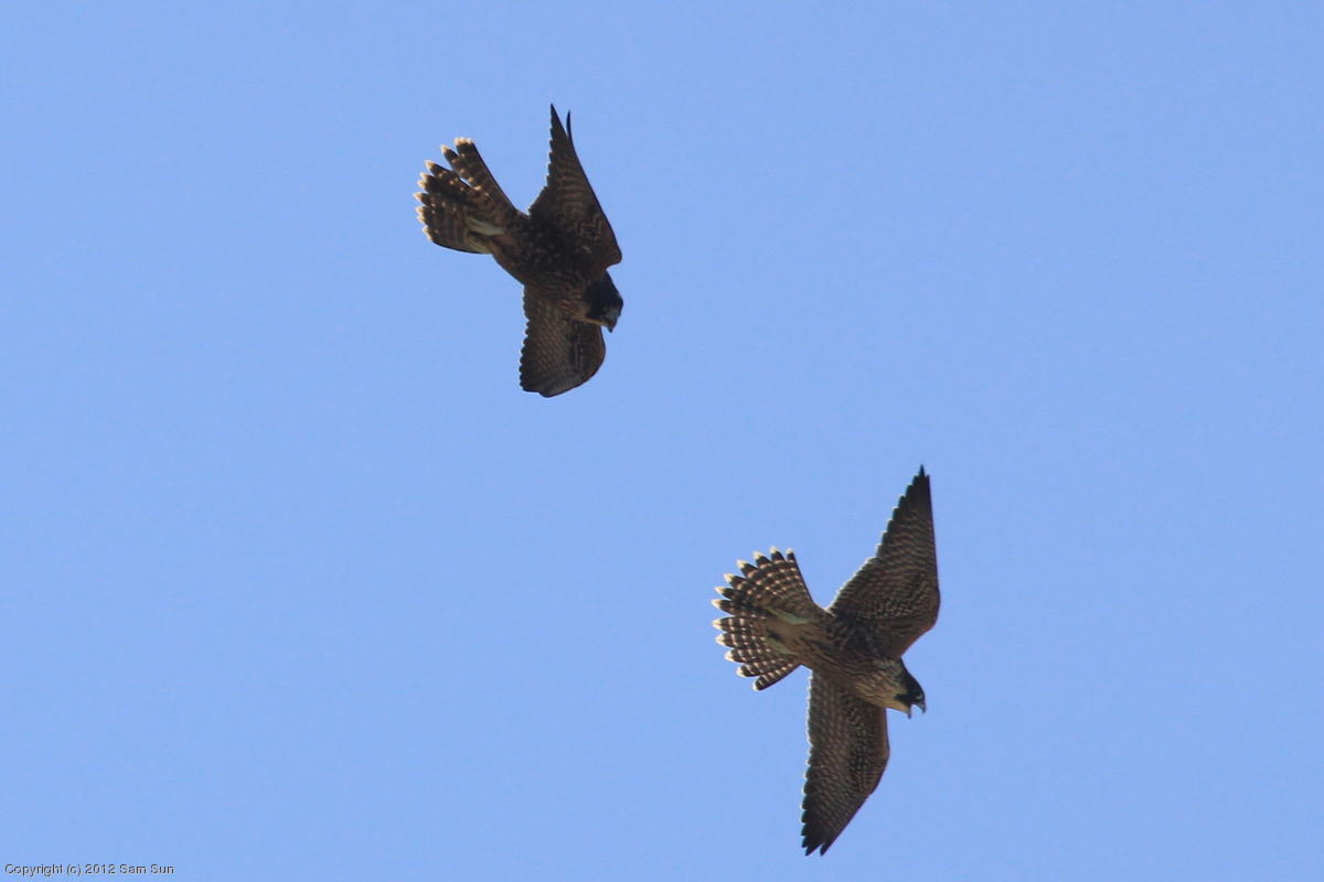 The juvenile peregrines are on the wing now.