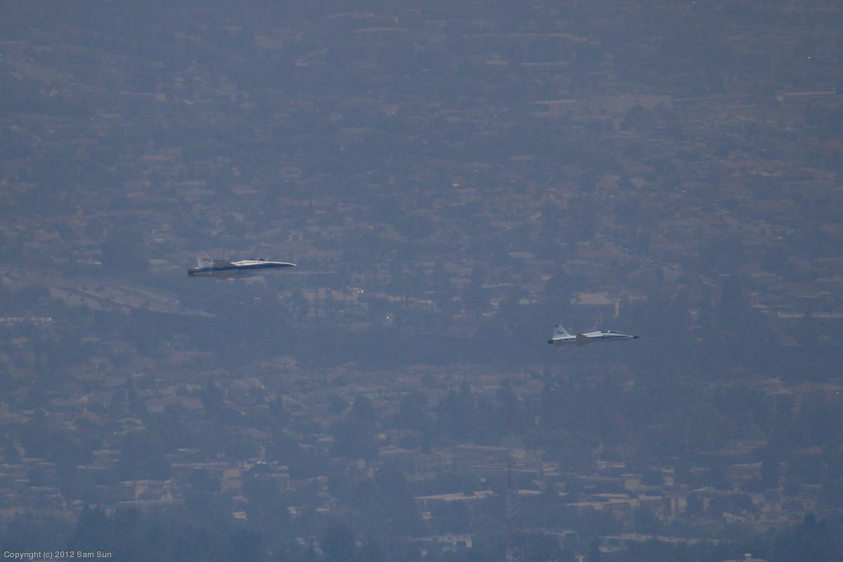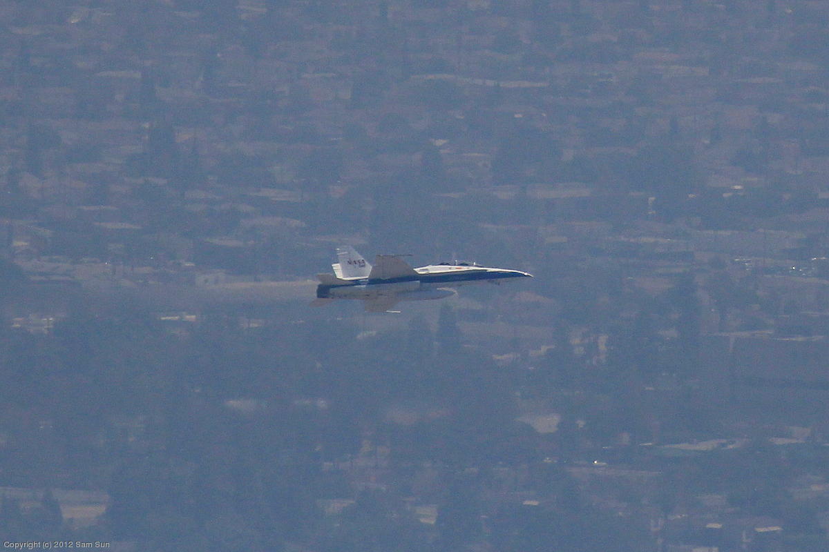 A NASA F-18 and T-38 flew around the Los Angeles area today scouting photo ops for the upcoming space shuttle ferry. They were using the callsign TYSON99.