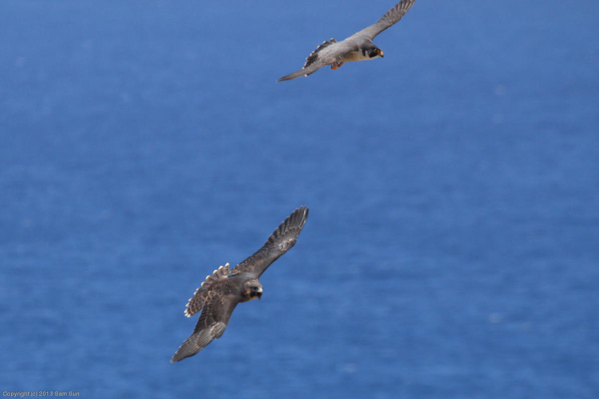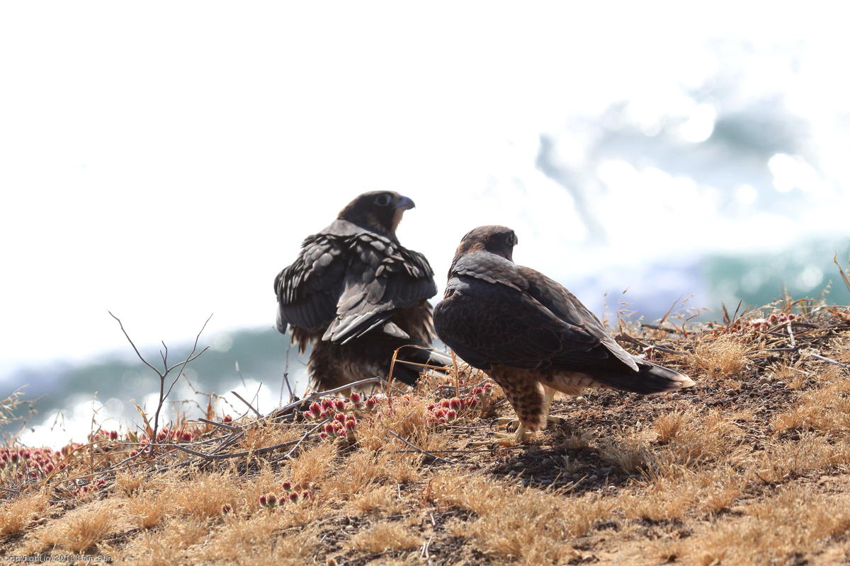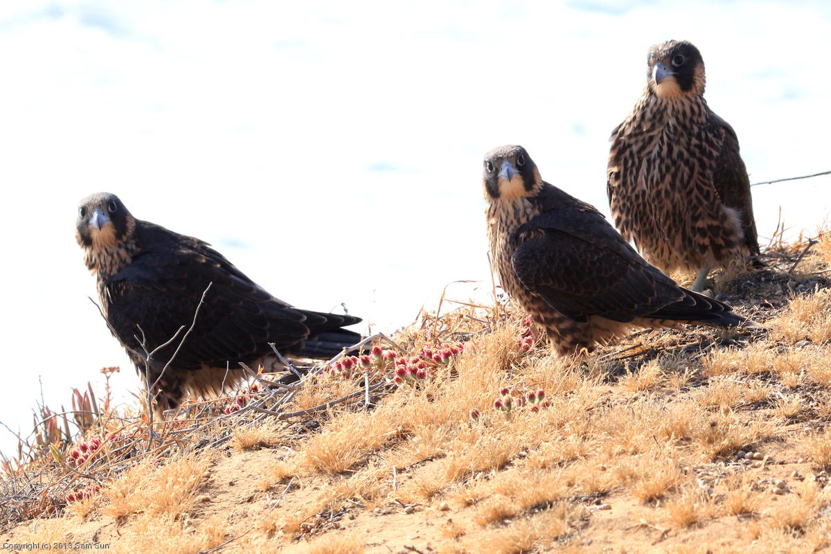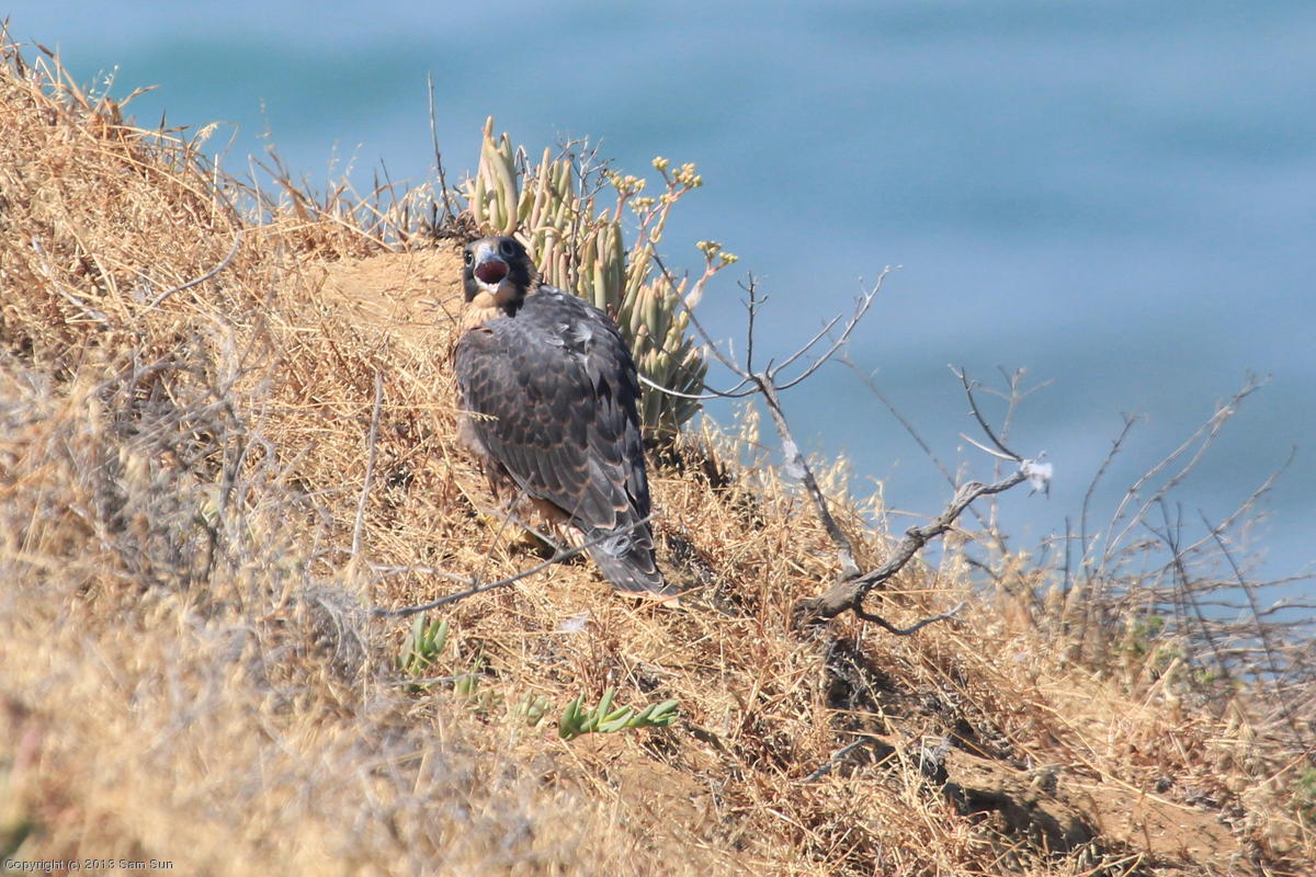 Three of the juveniles were flying today. One was left all alone by the nest. I had a nice close encounter with the juveniles - they landed at the top of the cliff about 20 feet away from me and didn't seem too concerned about my presence. Later on, mom brought in some dinner. Mom _was_ concerned about my presence and proceeded to dive bomb me. The late afternoon lighting wasn't great for photography, but it was a good show.