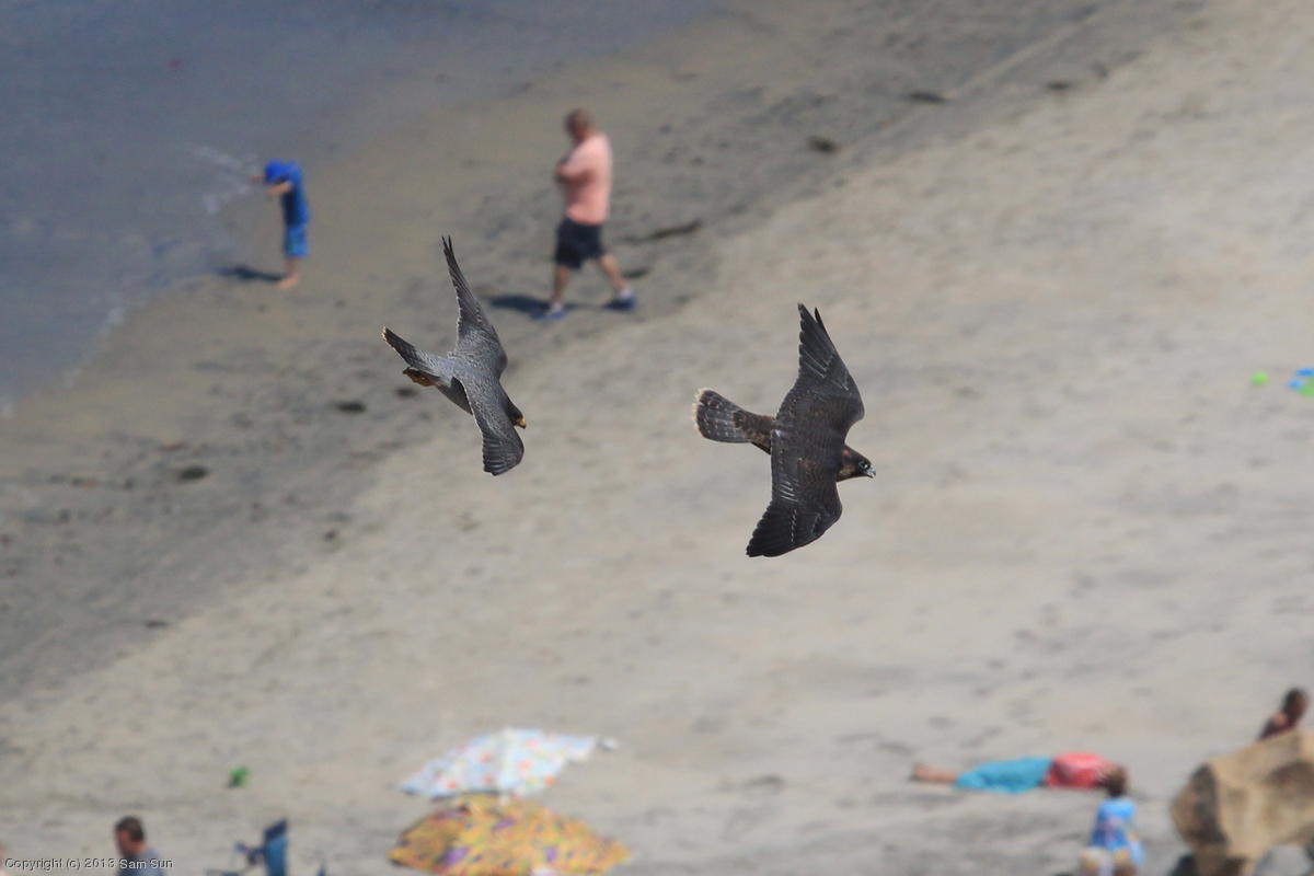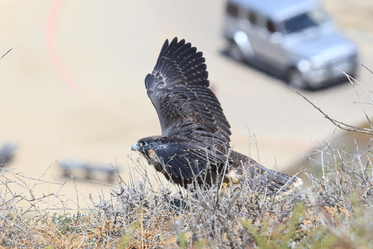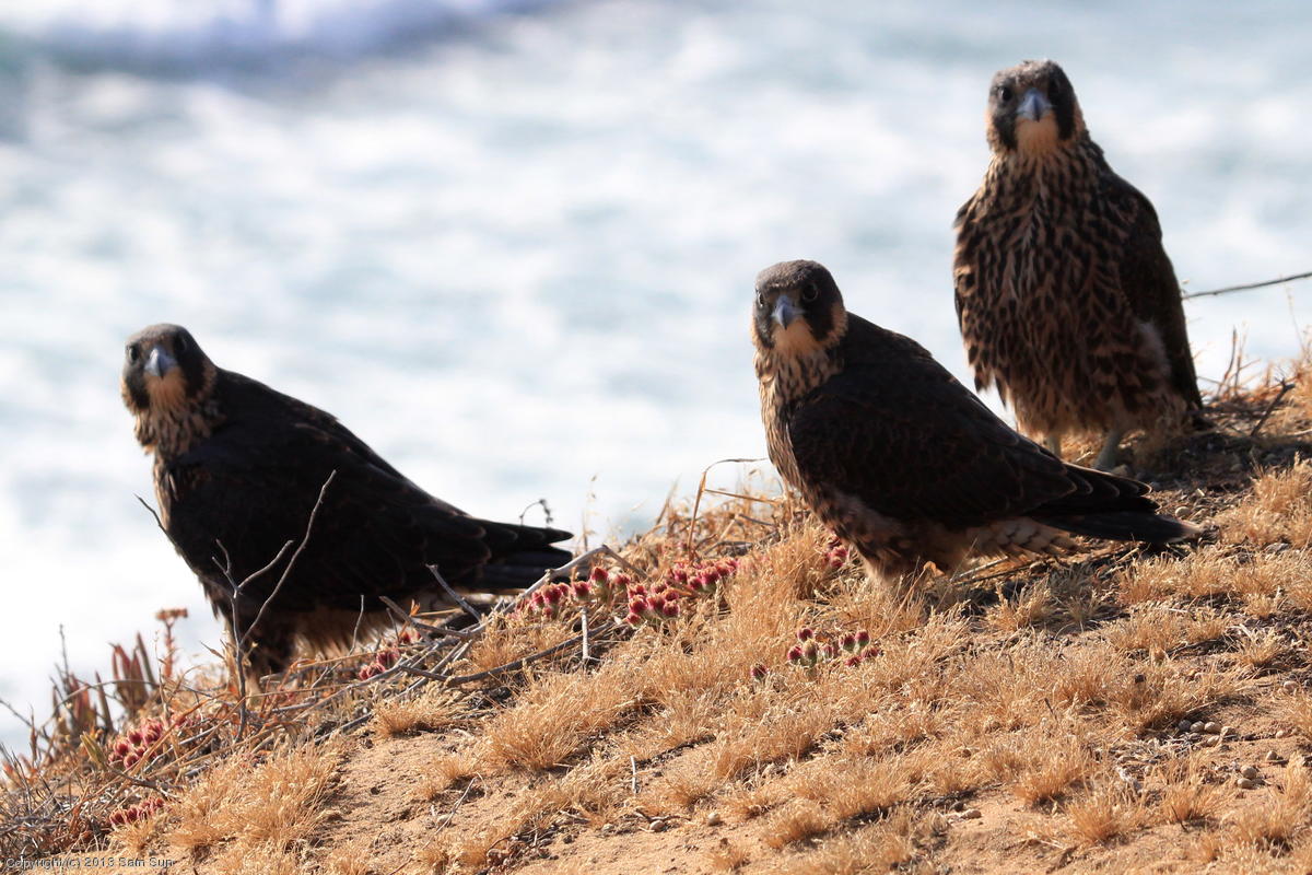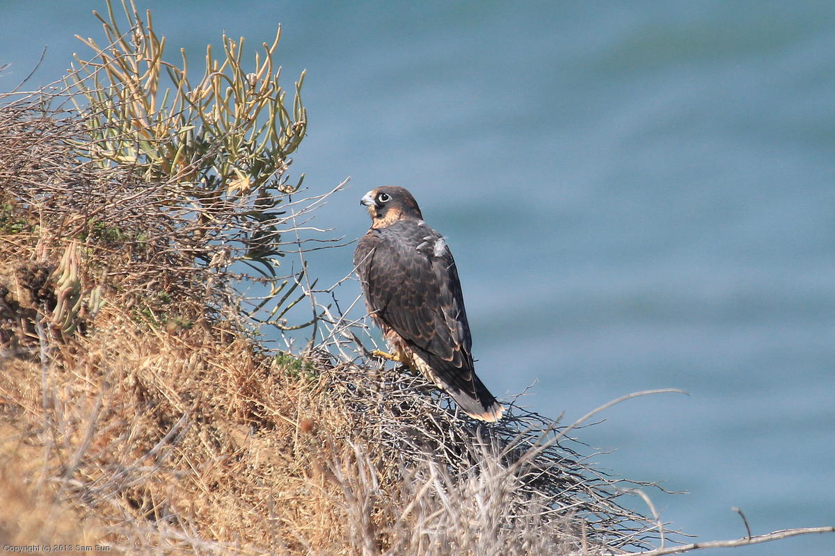 Three of the juveniles were flying today. One was left all alone by the nest. I had a nice close encounter with the juveniles - they landed at the top of the cliff about 20 feet away from me and didn't seem too concerned about my presence. Later on, mom brought in some dinner. Mom _was_ concerned about my presence and proceeded to dive bomb me. The late afternoon lighting wasn't great for photography, but it was a good show.