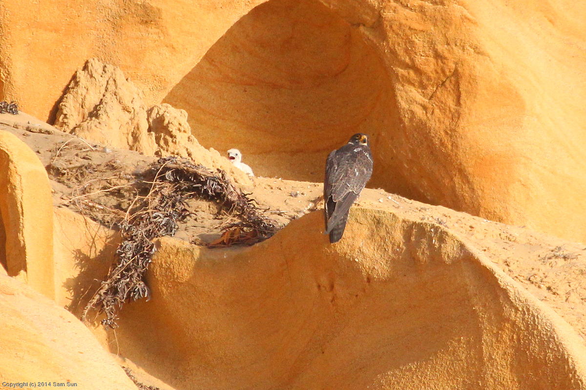 Mom is squawking at another falcon. (132k)