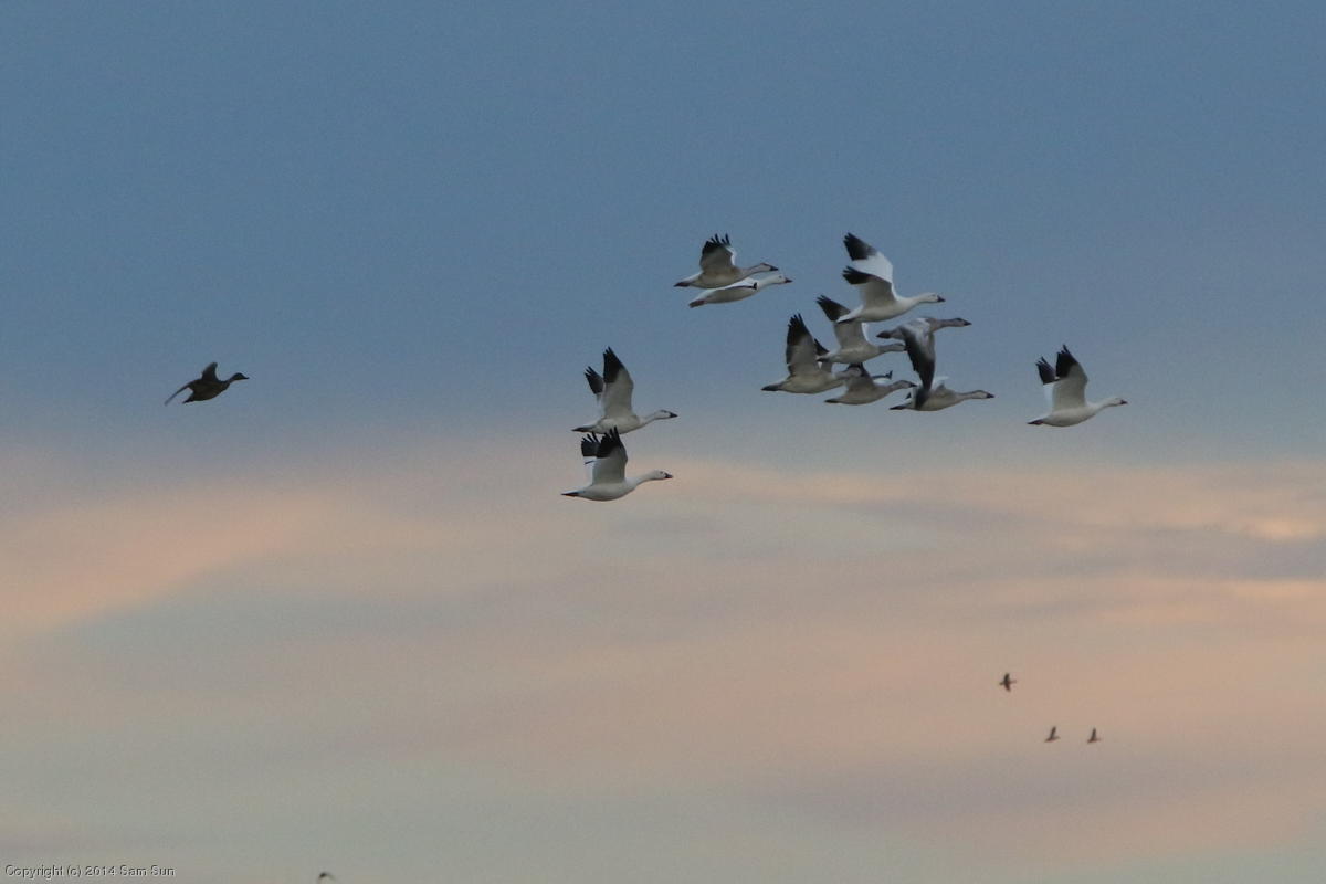Sunset at the Flight Deck. Overcast skies made for dim lighting. A lot of the geese came in after sunset.