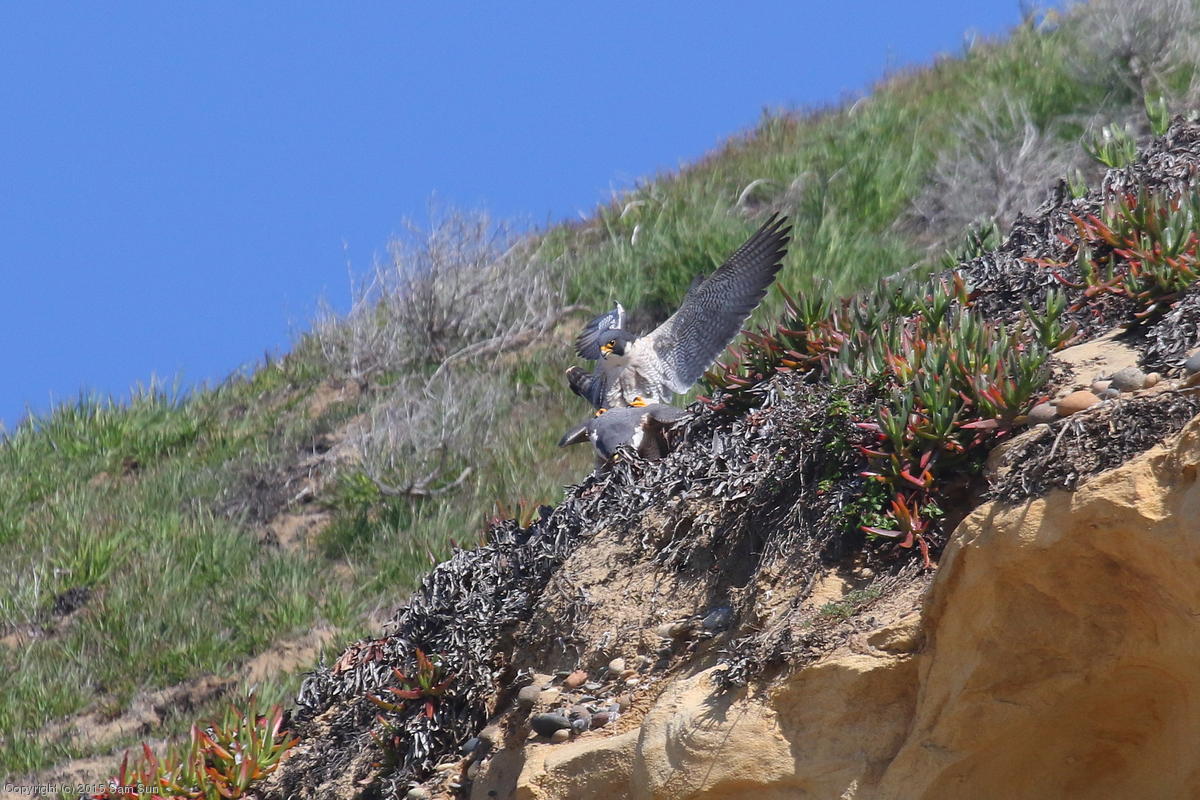 I was a peregrine pornographer again today. The mating sequence ran... 9 seconds.