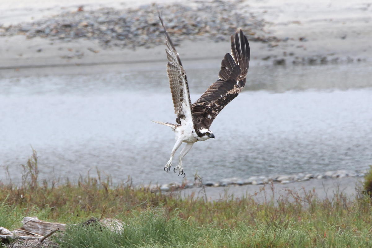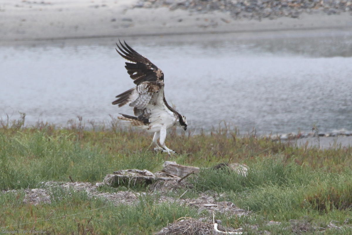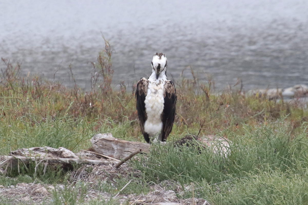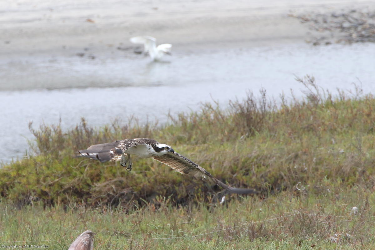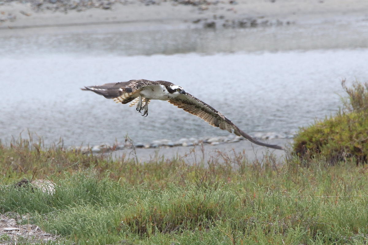 Just as I arrived this morning, I saw a bird on the beach in the distance. It didn't look quite like a gull, and as it turned out, it was one of the juveniles just hanging out. She would fly a hundred feet or so whenever a jogger got too close, but otherwise didn't seem to mind the people. At one point she flew up within maybe 25 feet of me.