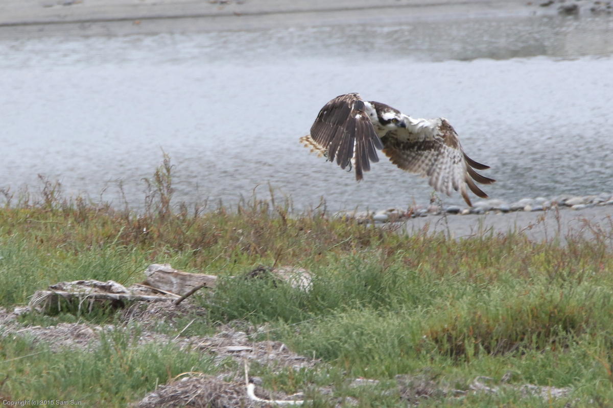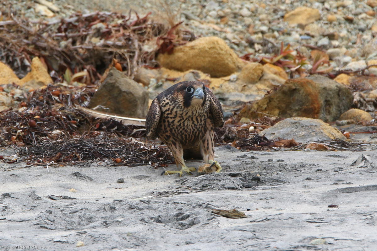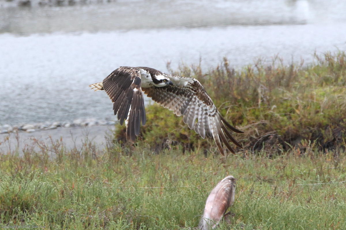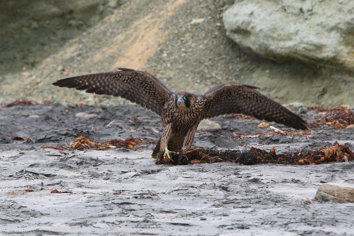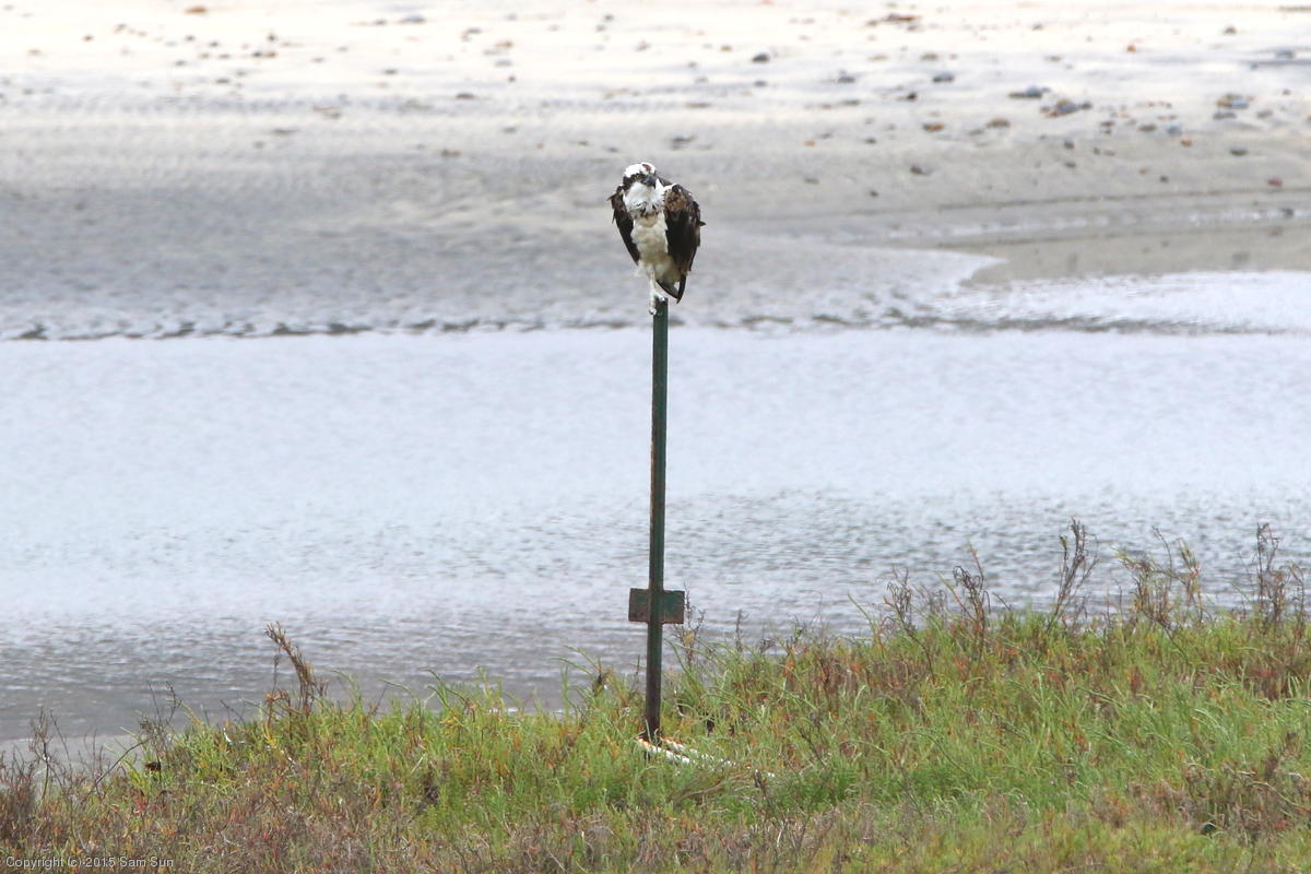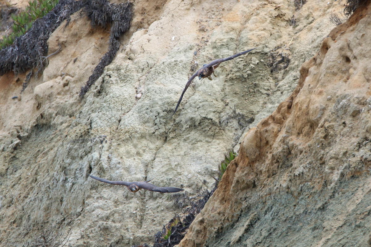 Just as I arrived this morning, I saw a bird on the beach in the distance. It didn't look quite like a gull, and as it turned out, it was one of the juveniles just hanging out. She would fly a hundred feet or so whenever a jogger got too close, but otherwise didn't seem to mind the people. At one point she flew up within maybe 25 feet of me.