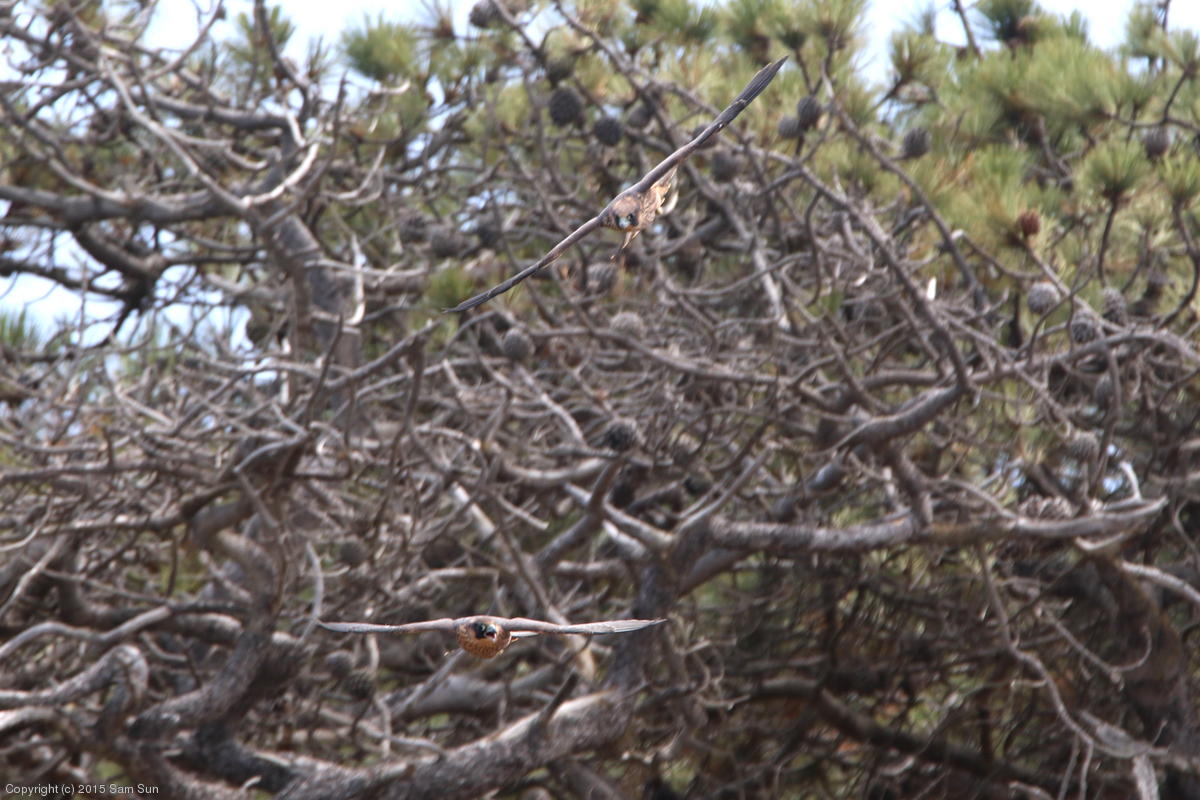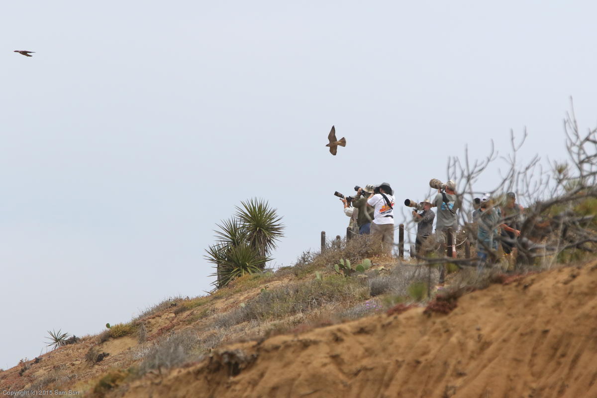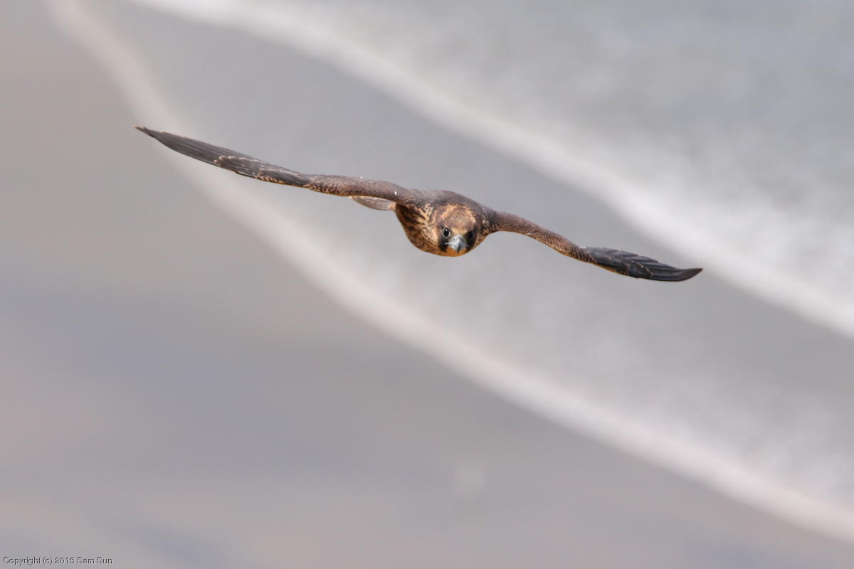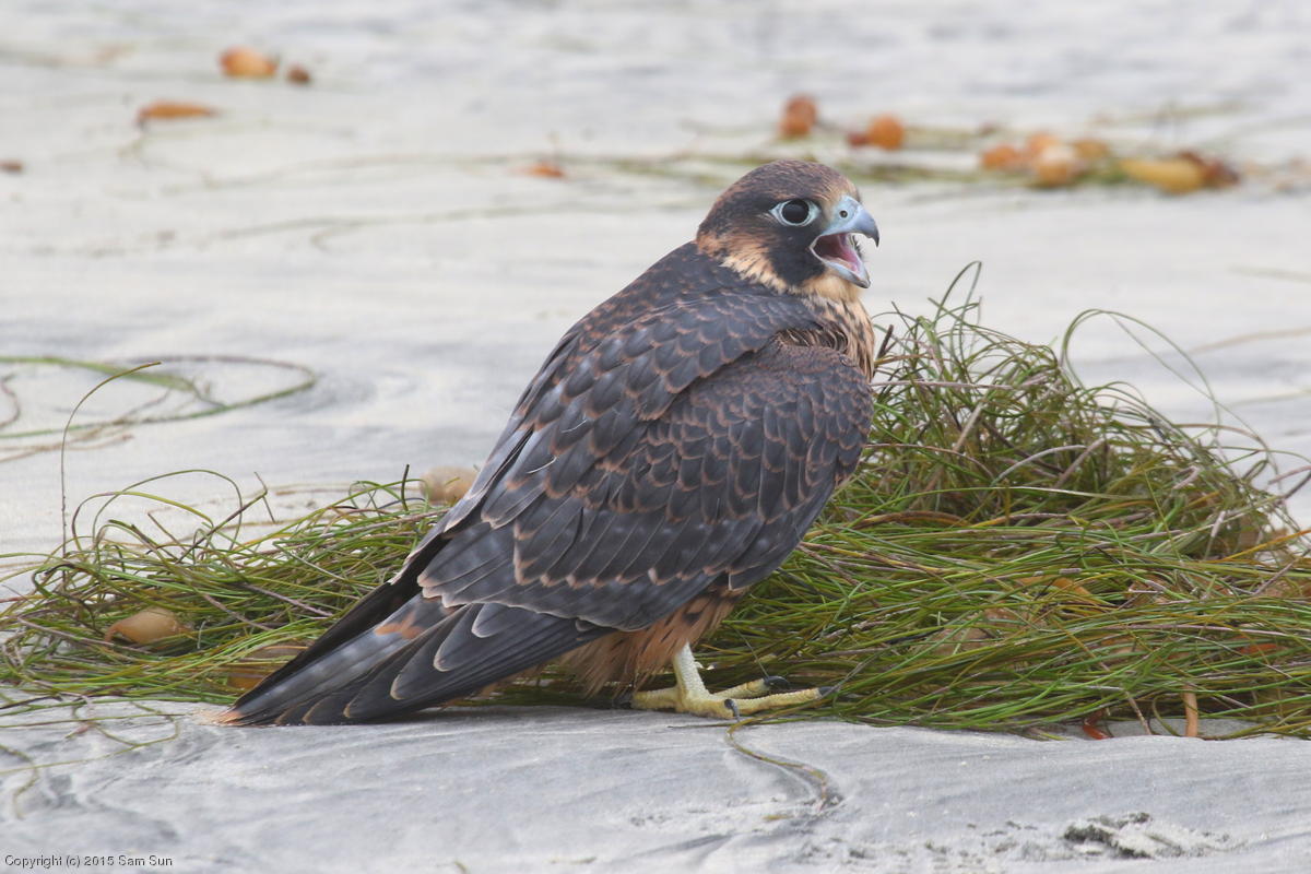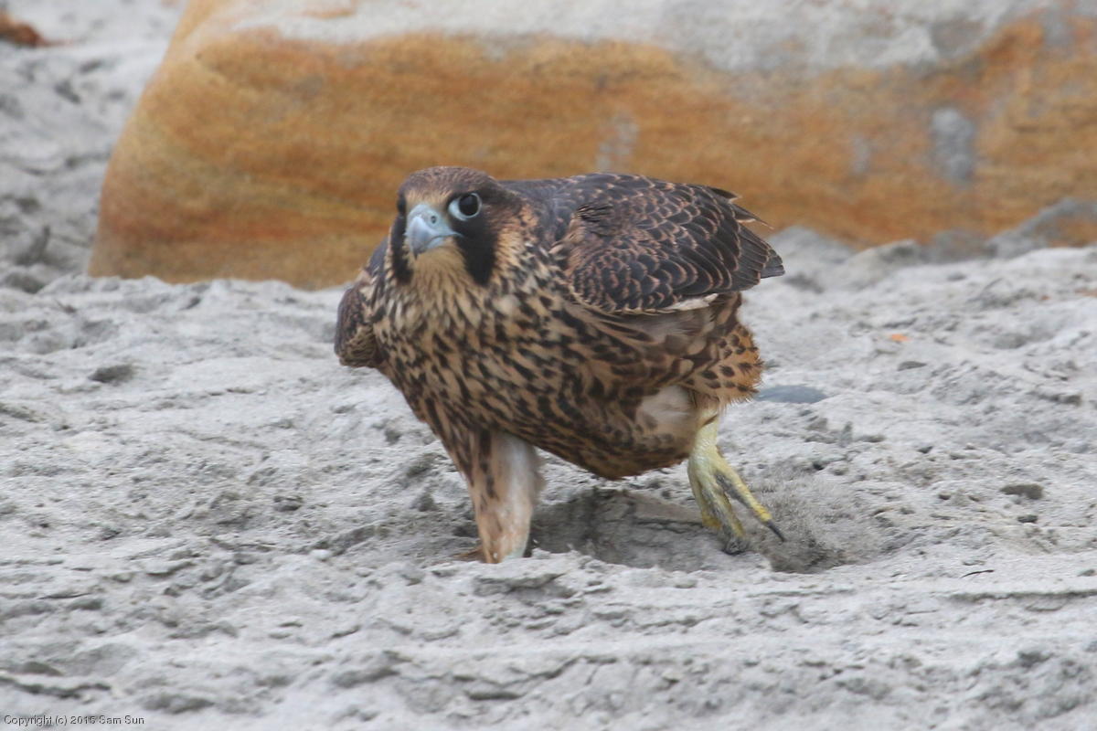 Just as I arrived this morning, I saw a bird on the beach in the distance. It didn't look quite like a gull, and as it turned out, it was one of the juveniles just hanging out. She would fly a hundred feet or so whenever a jogger got too close, but otherwise didn't seem to mind the people. At one point she flew up within maybe 25 feet of me.
