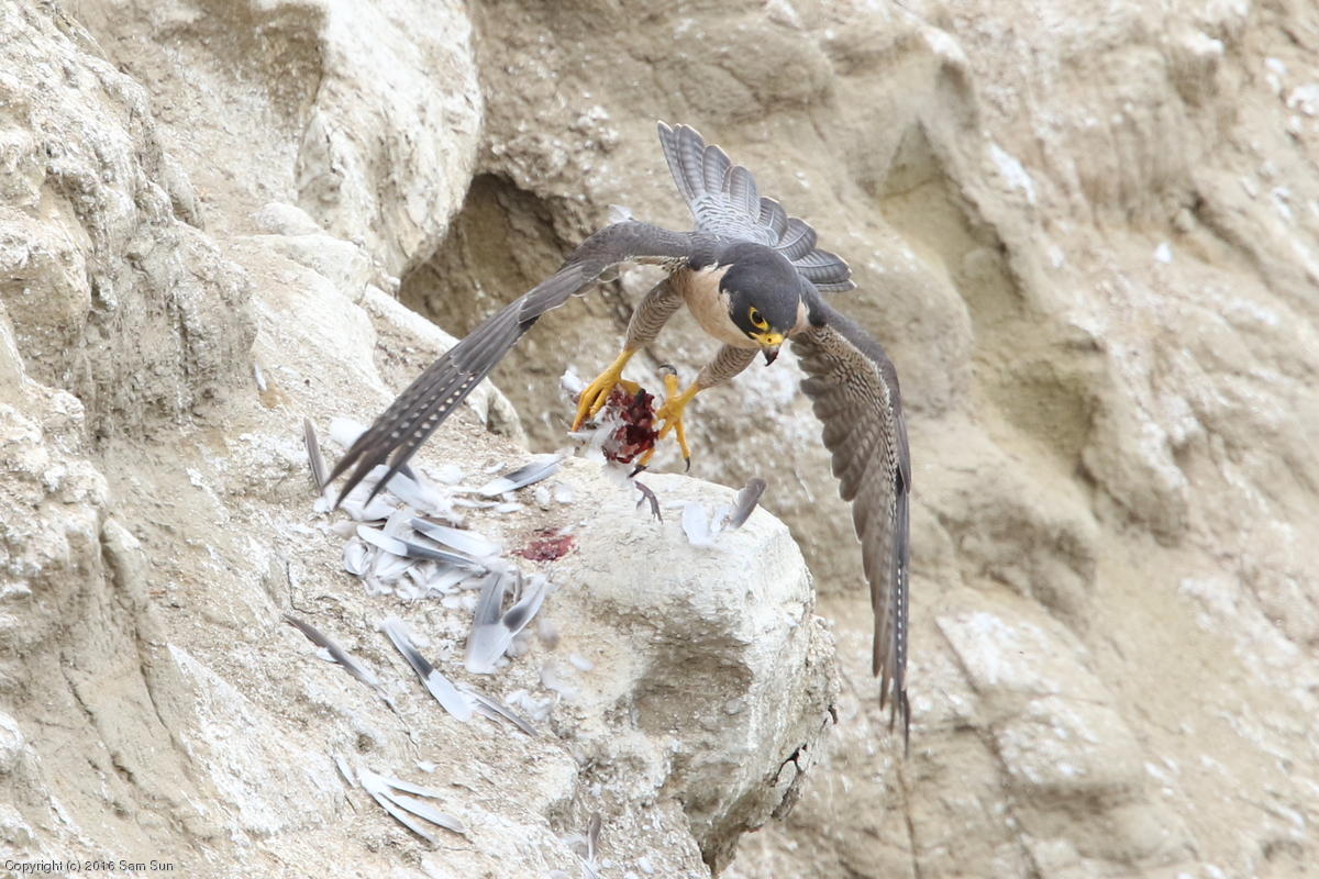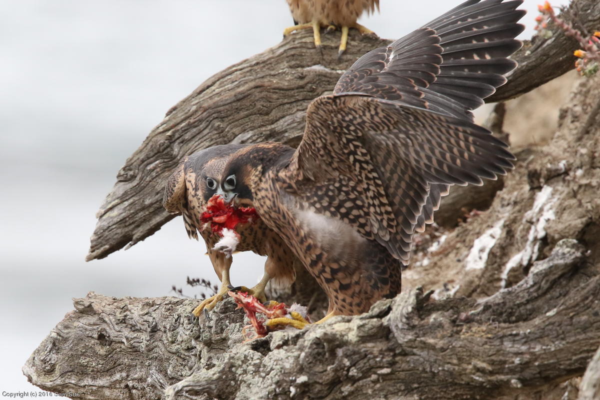 I was back in the afternoon, and got to see a juvenile plucking a bird nearby.