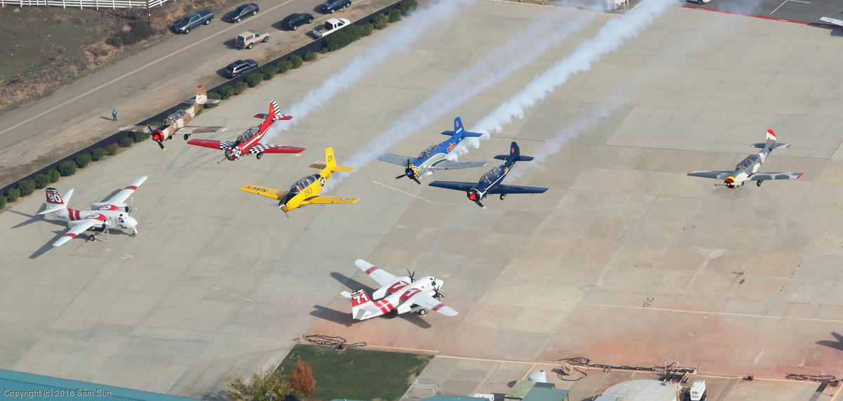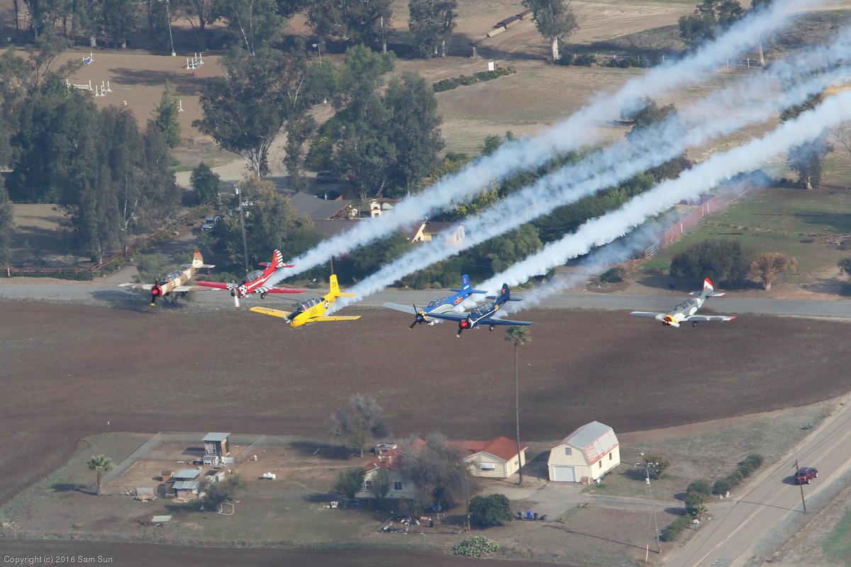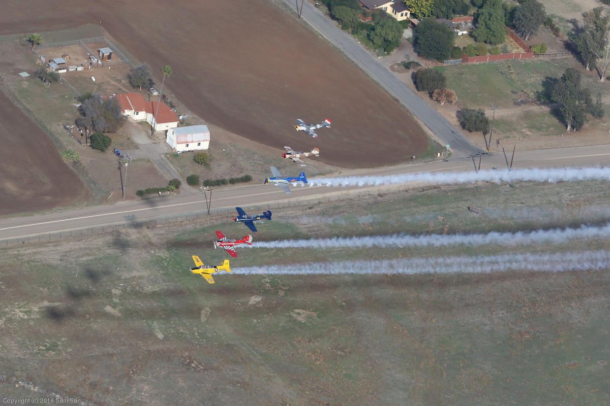 A six-ship flyover for the Ramona Airport Toys for Tots event
