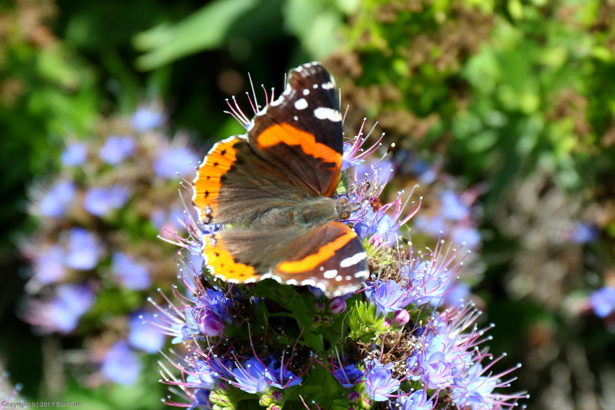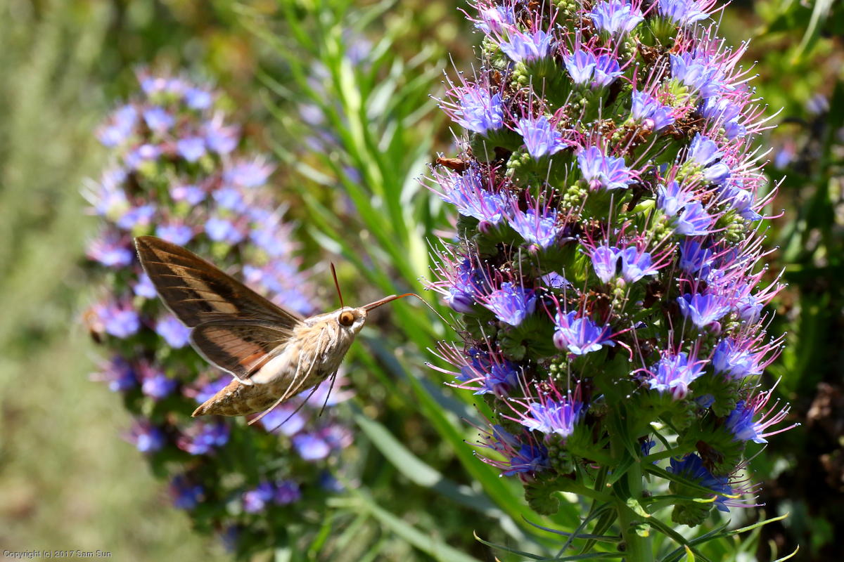There were dozens of white-lined sphinx moths nectaring on the flowers at the La Jolla Coast Walk! Not surprisingly they're also known as hummingbird moths.