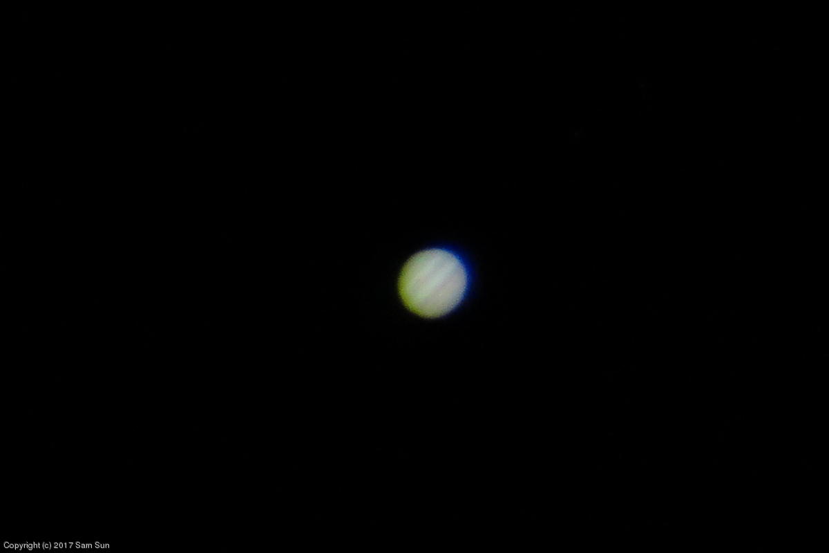Digiscoping Jupiter through the Clark refractor - the Great Red Spot is barely visible at 9 o'clock