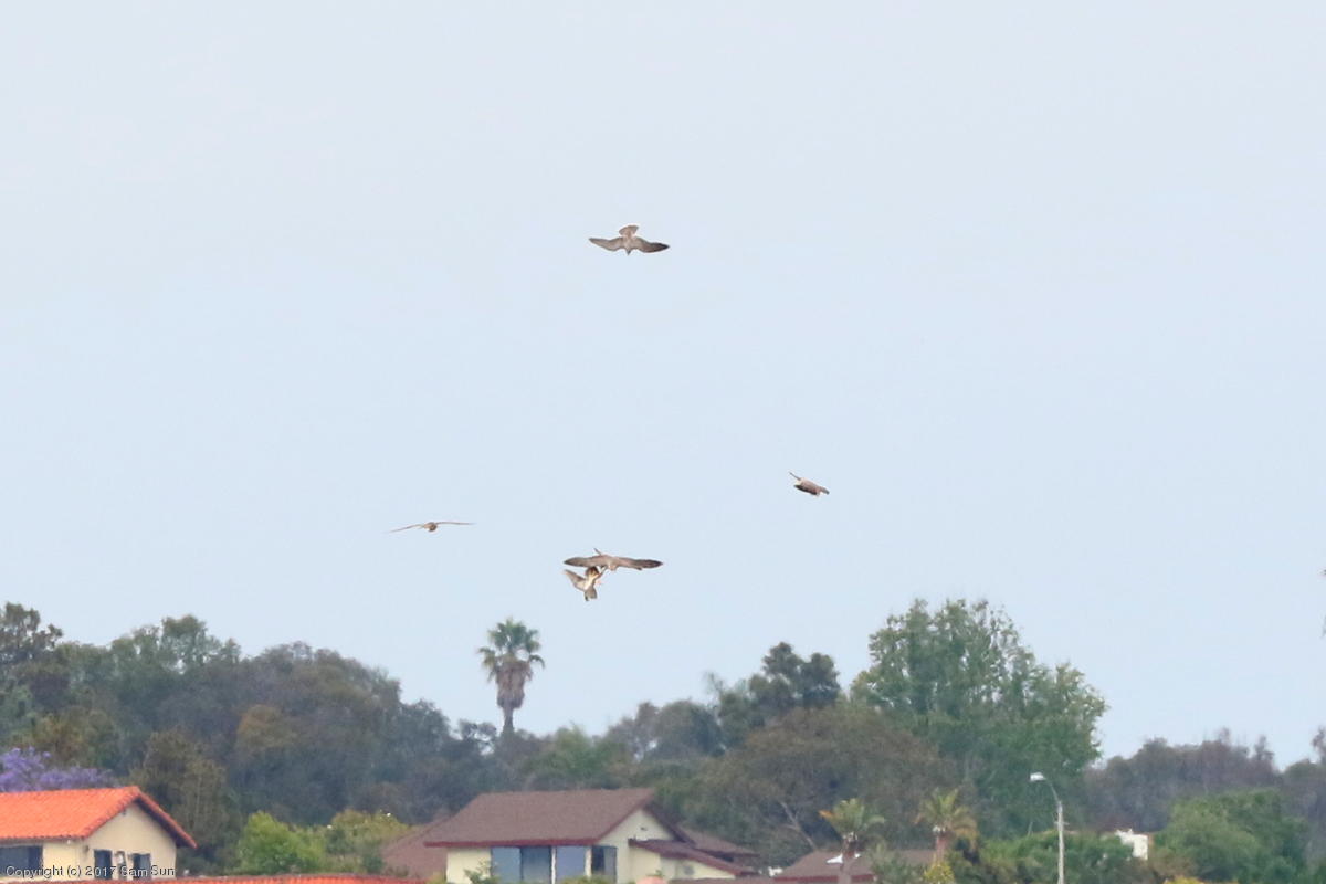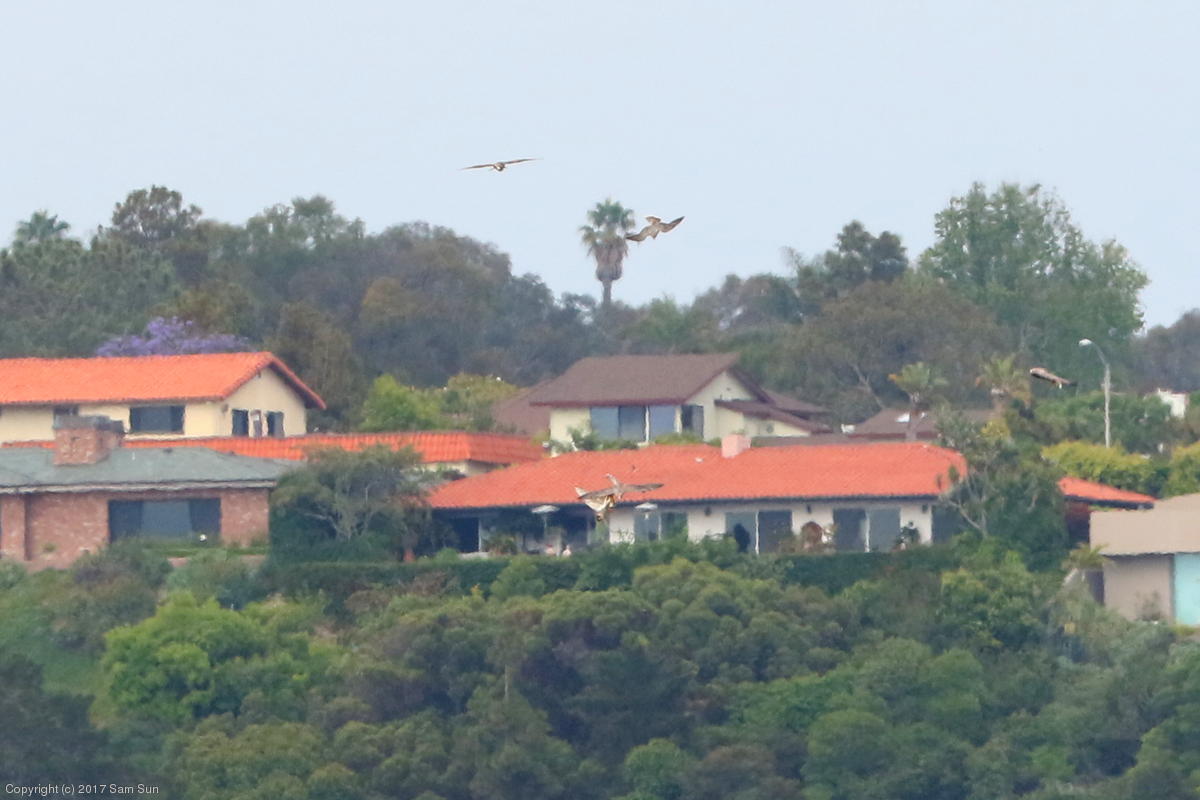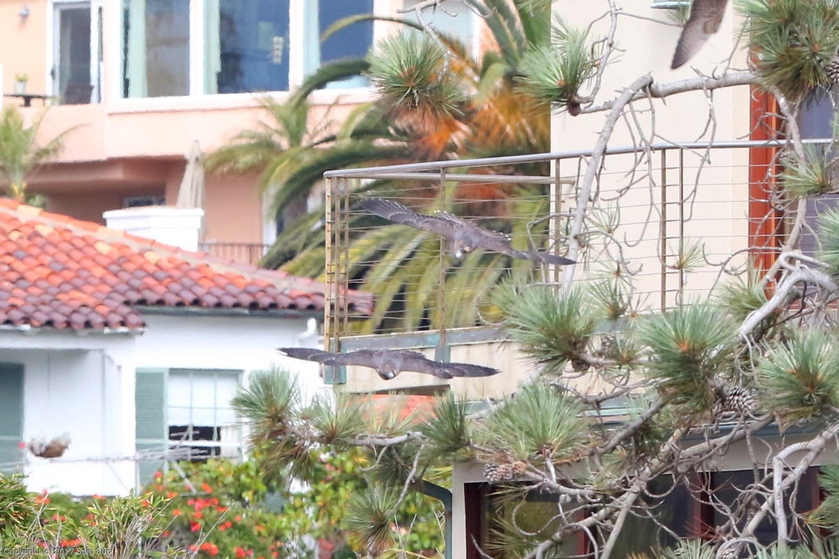Another mostly overcast day. When I arrived, 2 juveniles were perched in the cove, one on a ledge near the nest area, another on the branch by the photographer's spot. The latter left almost immediately towards the north. The juveniles appear to be spending more of their time towards La Jolla Shores. All 4 juveniles flew far out east to intercept dad bringing in food.