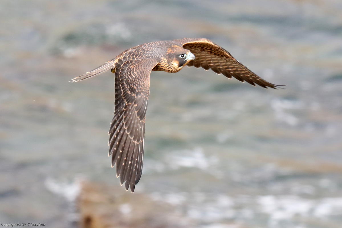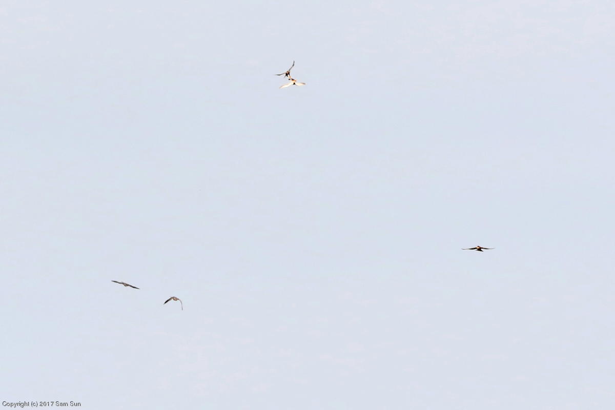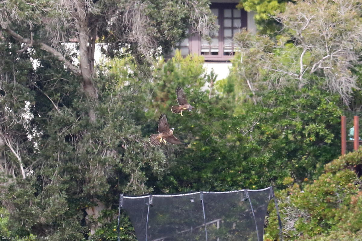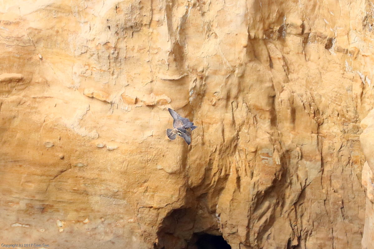 Another mostly overcast day. When I arrived, 2 juveniles were perched in the cove, one on a ledge near the nest area, another on the branch by the photographer's spot. The latter left almost immediately towards the north. The juveniles appear to be spending more of their time towards La Jolla Shores. All 4 juveniles flew far out east to intercept dad bringing in food.