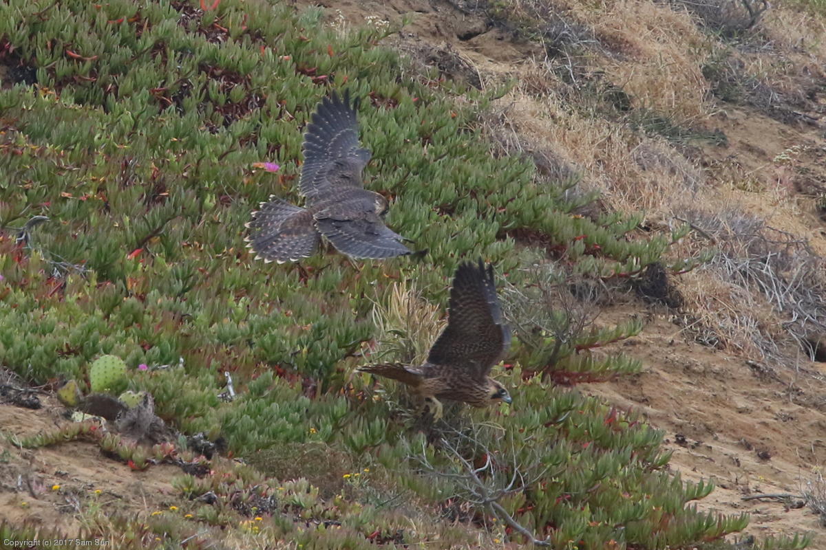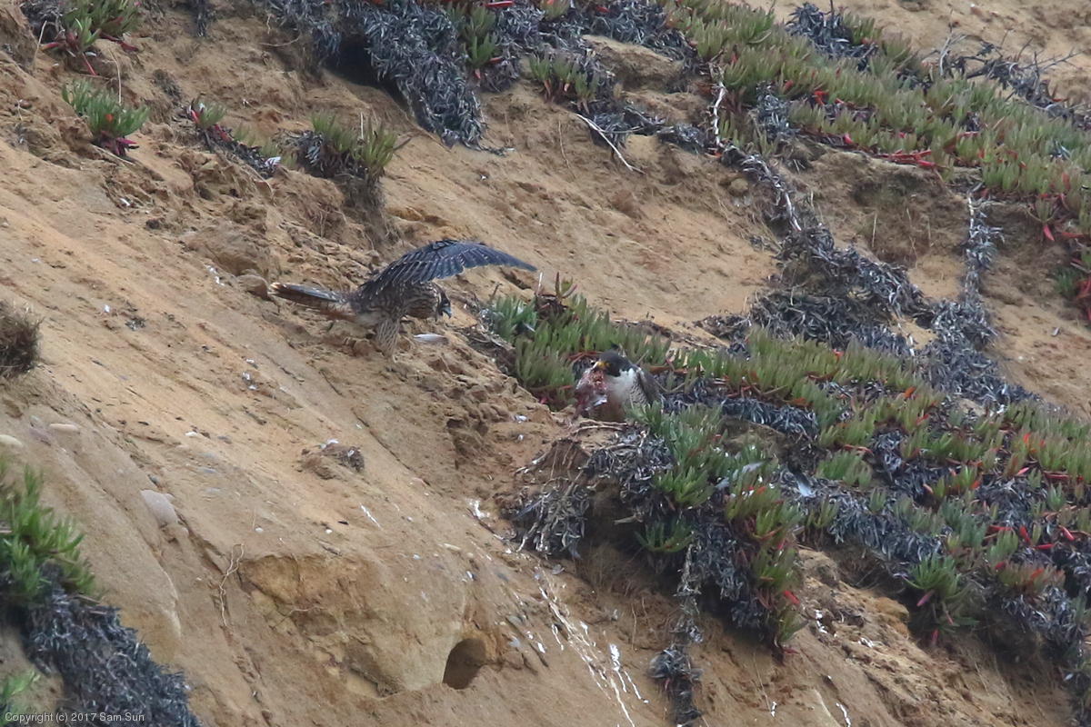 The juveniles were flying around fairly low near the north end of the cliff. The light wasn't good for photography, but there was some good activity.