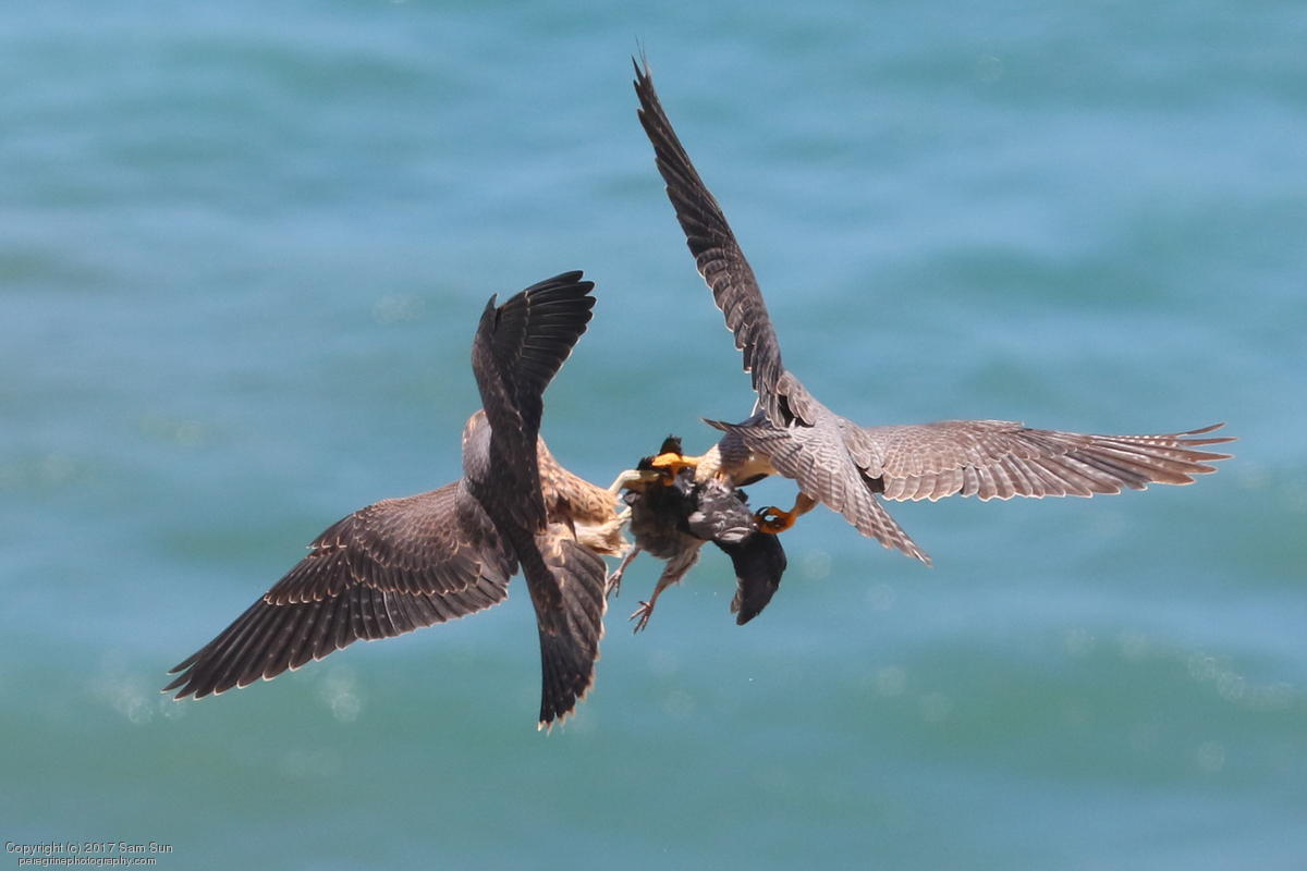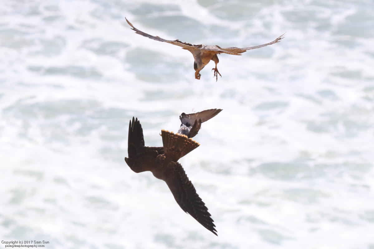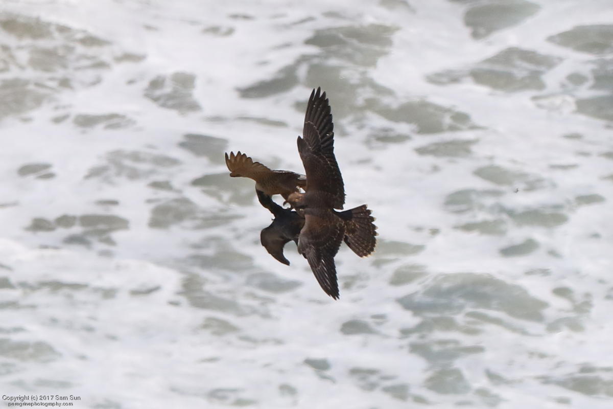 I was out at Torrey Pines for a long 10 hour day! Quite a bit of activity with a juvenile exploring the beach, some dogfights, chases, and food exchanges. A juvenile had gone swimming around mid-day yesterday, so several photographers were waiting on the beach hoping for a repeat. It seemed a bit more shy of the water today.