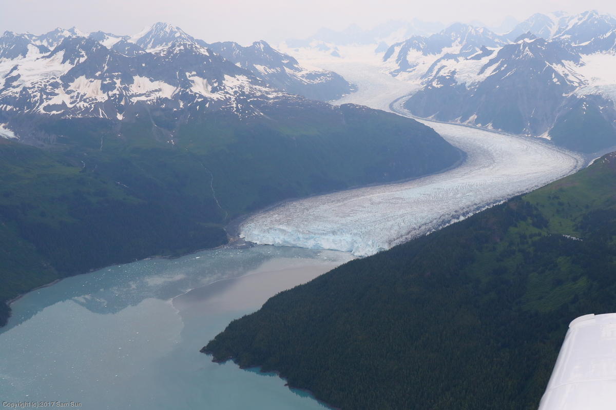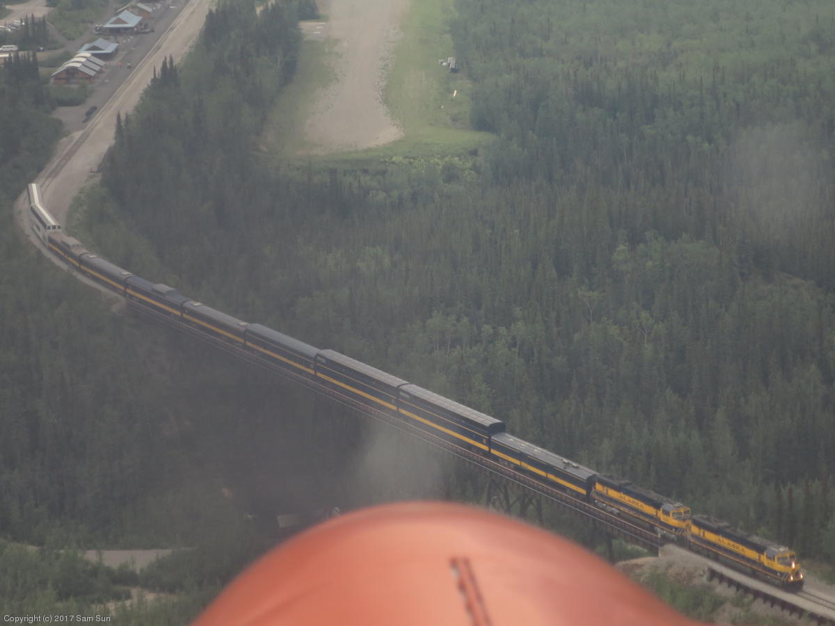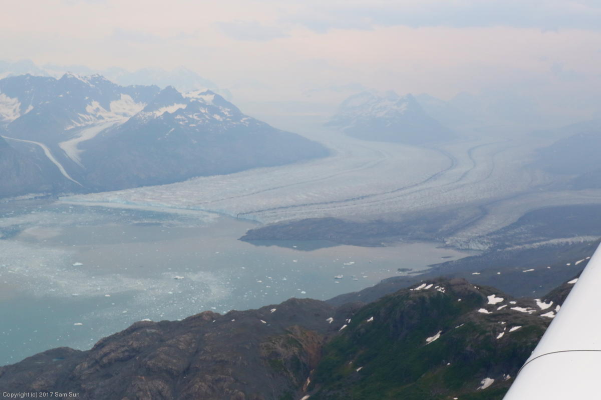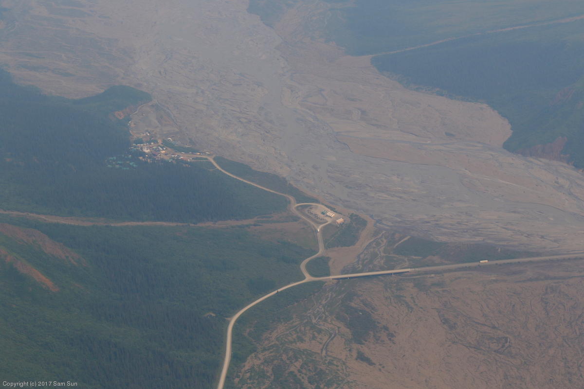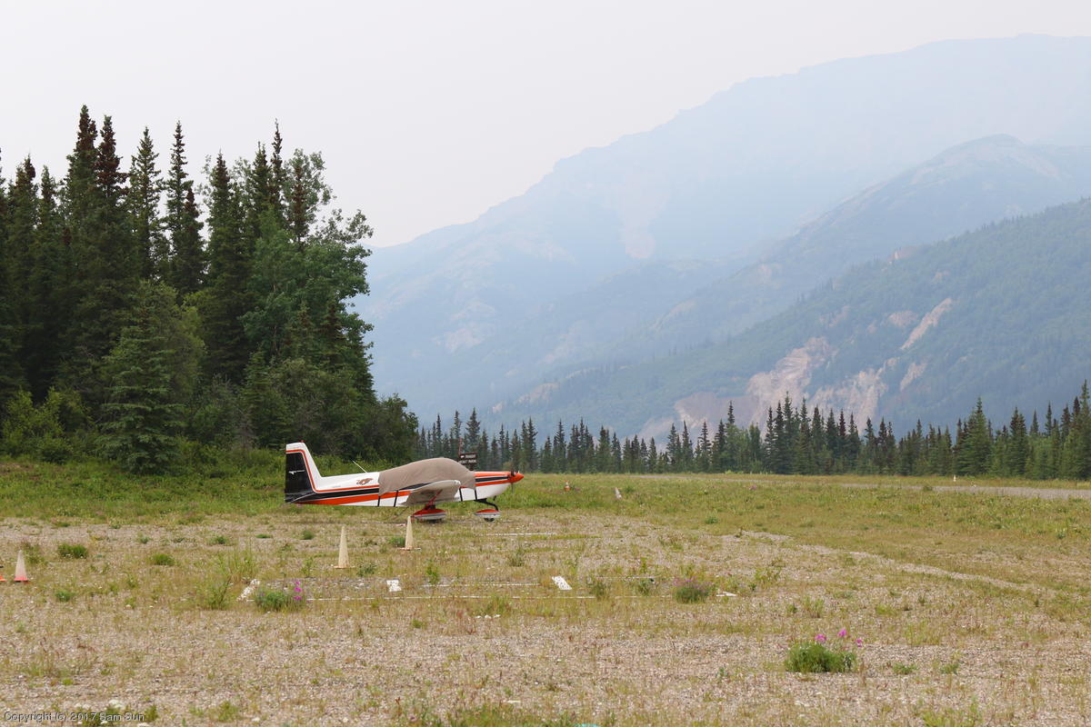 With rain approaching Valdez, I attempted to follow the good weather back north to Denali. It would have been great, except the smoke had blown in from the east and blanketed the entire valley. The glacier views leaving Valdez were breathtaking, and I climbed all the way up to 17000' to get a good view of Denali. The landing at McKinley National Park Airport was my first at a gravel strip.