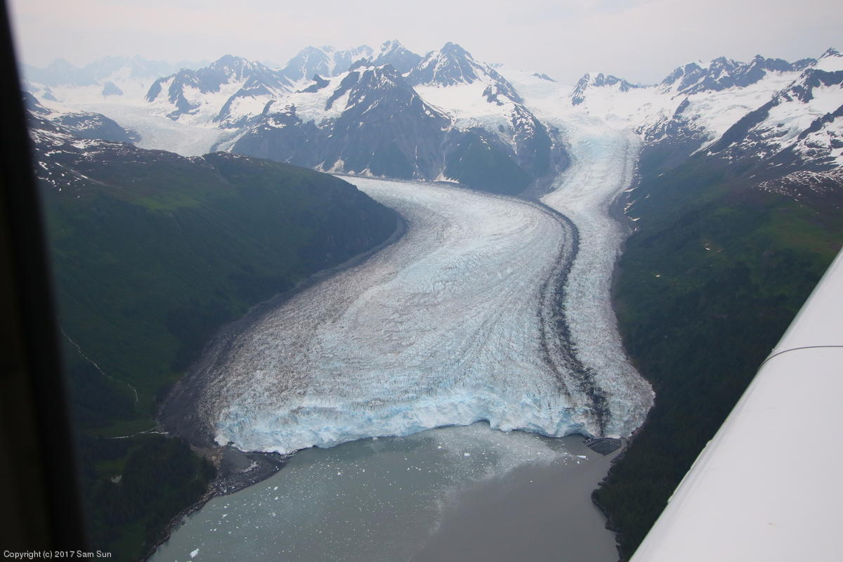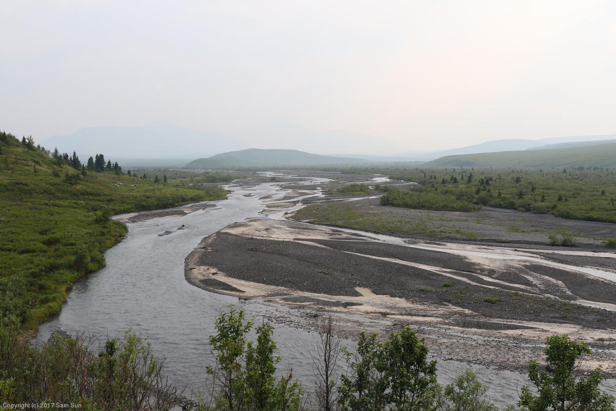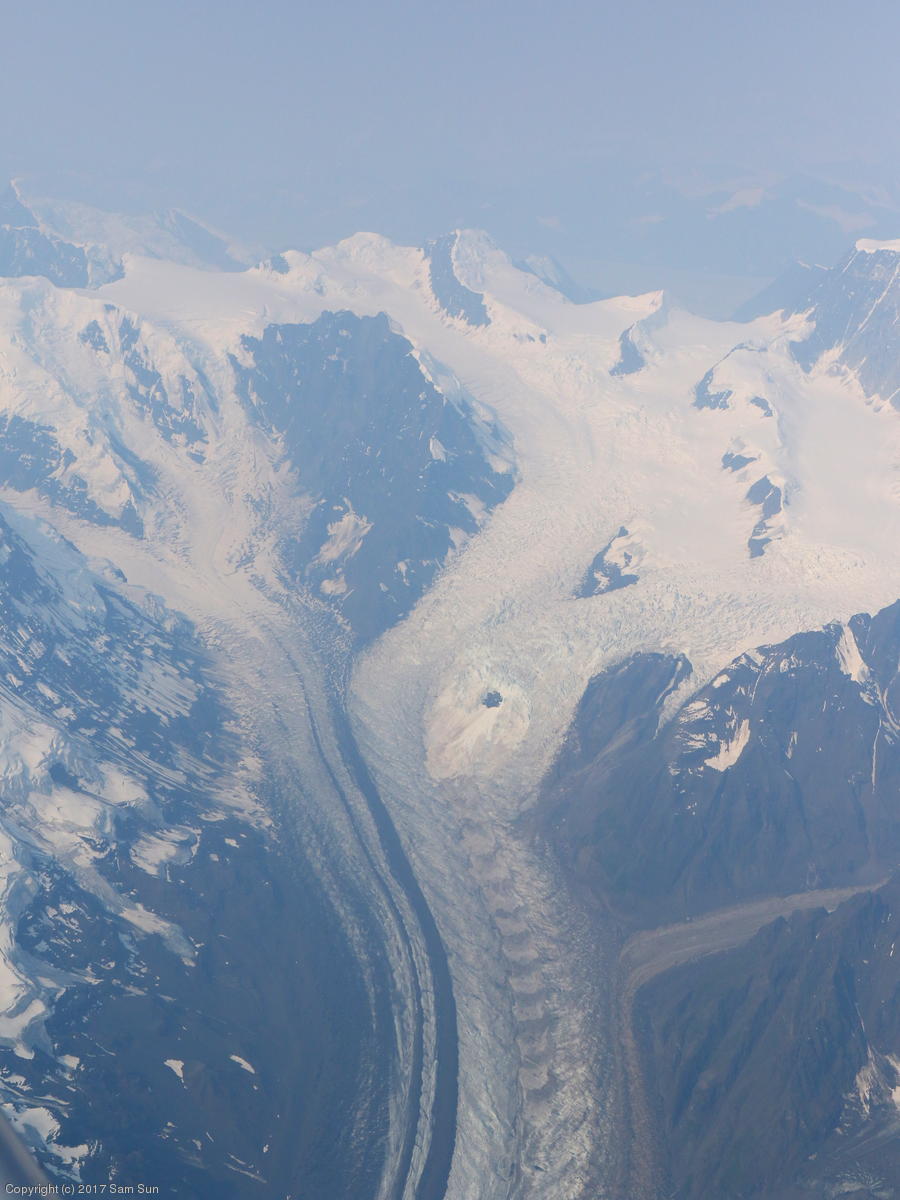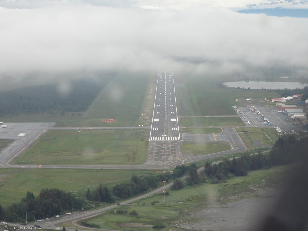 With rain approaching Valdez, I attempted to follow the good weather back north to Denali. It would have been great, except the smoke had blown in from the east and blanketed the entire valley. The glacier views leaving Valdez were breathtaking, and I climbed all the way up to 17000' to get a good view of Denali. The landing at McKinley National Park Airport was my first at a gravel strip.