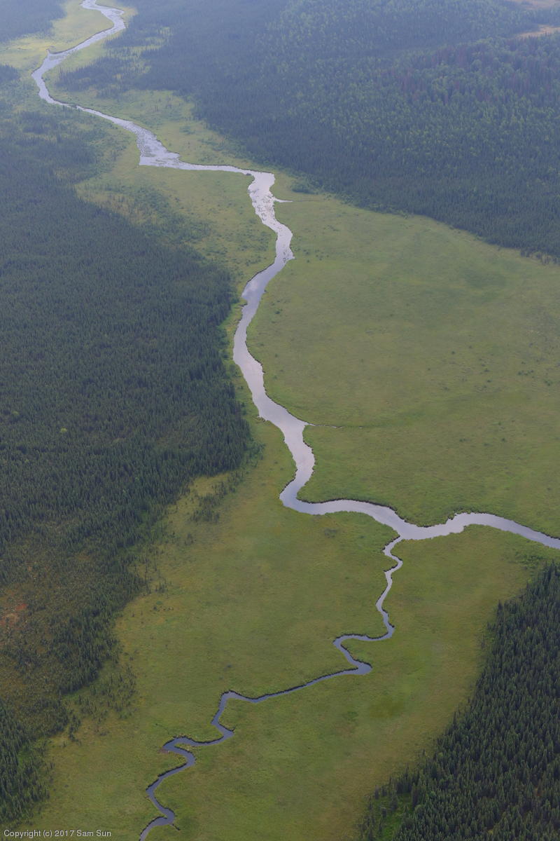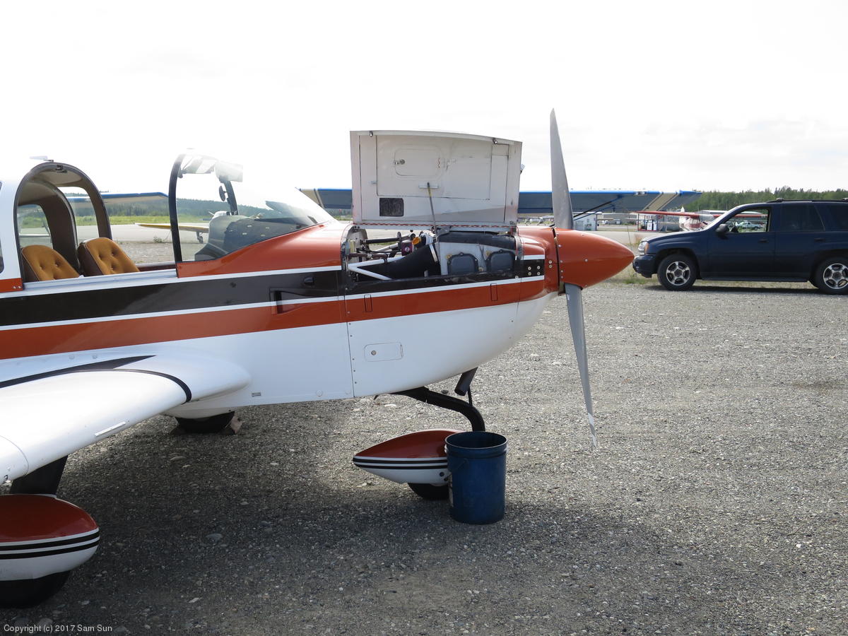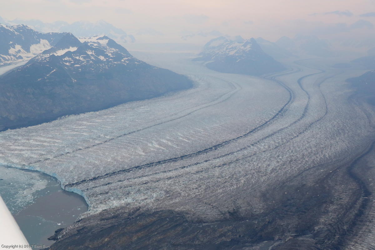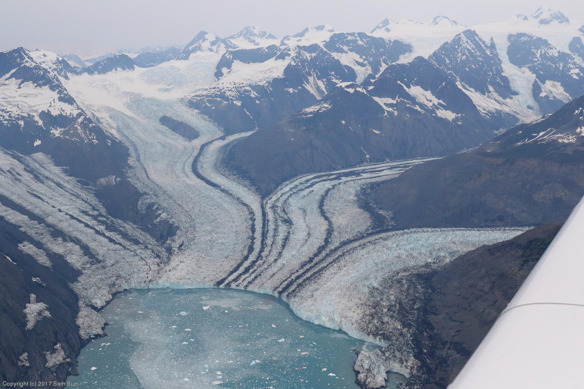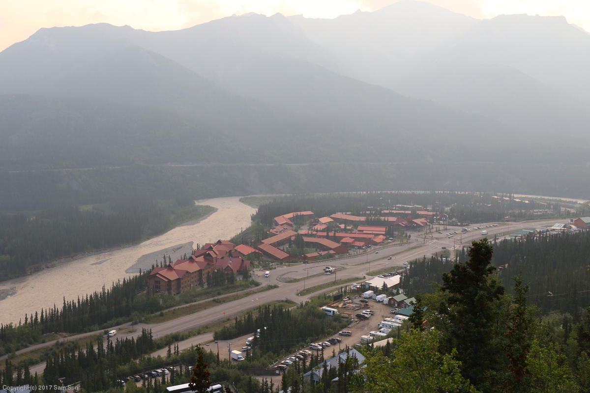 With rain approaching Valdez, I attempted to follow the good weather back north to Denali. It would have been great, except the smoke had blown in from the east and blanketed the entire valley. The glacier views leaving Valdez were breathtaking, and I climbed all the way up to 17000' to get a good view of Denali. The landing at McKinley National Park Airport was my first at a gravel strip.
