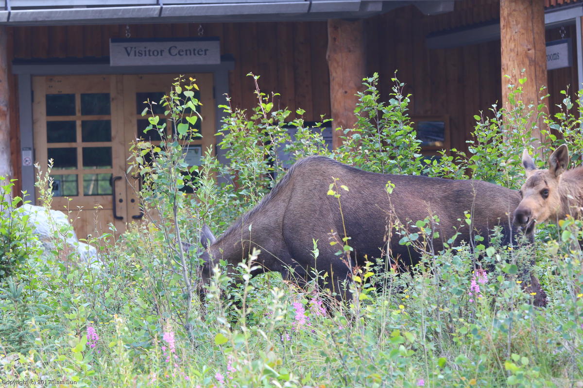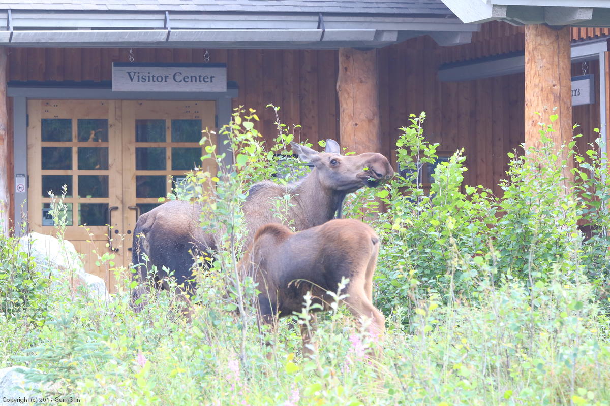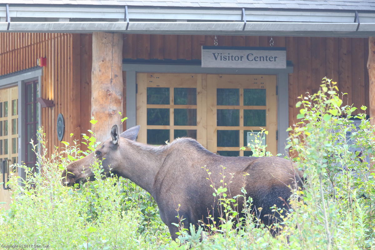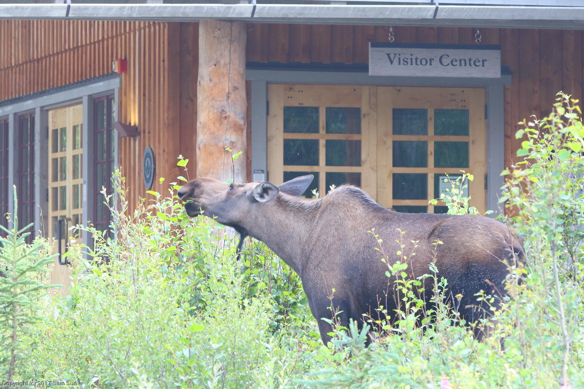 The visitor center was just a few minutes walk from the airport. The park offers free shuttles 15 miles into the park to Savage River, or paid shuttles that run the entire 90 miles of road to Kantishna. I hiked the Savage River Loop Trail, and returned to the visitor center to find a moose with her two calves.