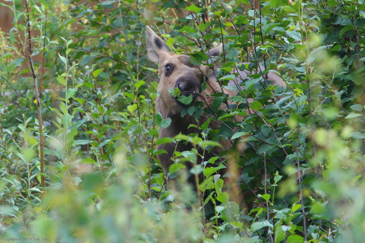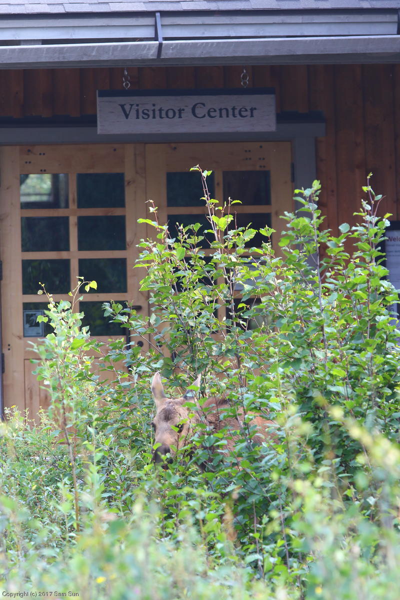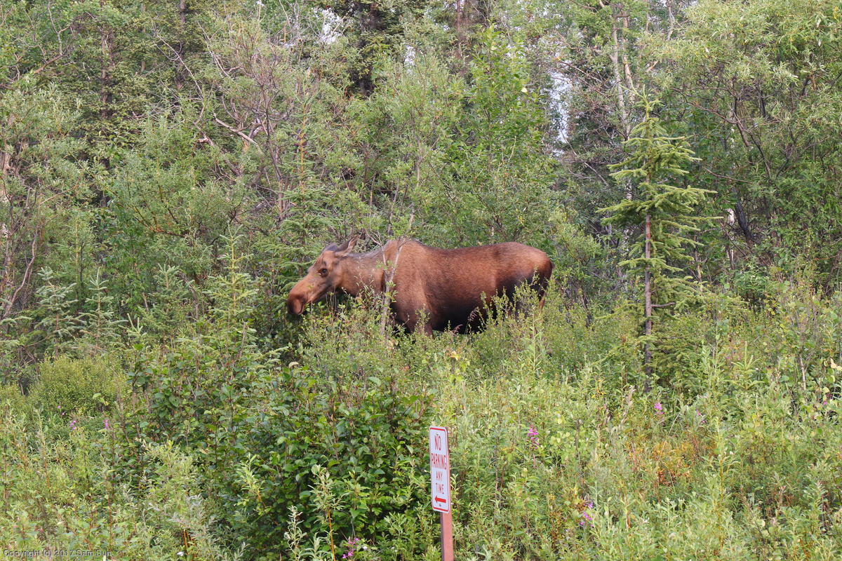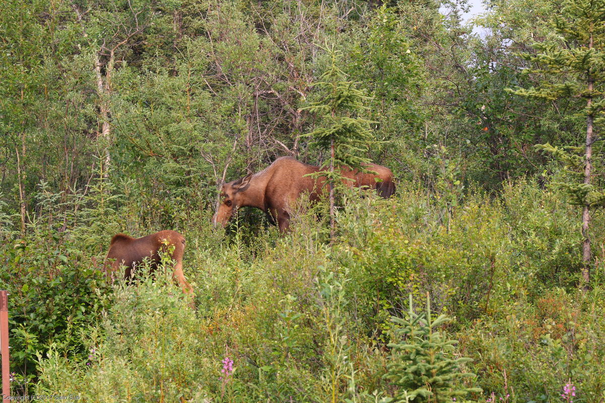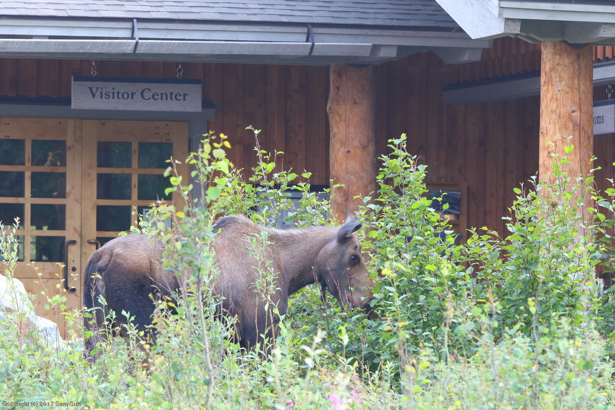 The visitor center was just a few minutes walk from the airport. The park offers free shuttles 15 miles into the park to Savage River, or paid shuttles that run the entire 90 miles of road to Kantishna. I hiked the Savage River Loop Trail, and returned to the visitor center to find a moose with her two calves.