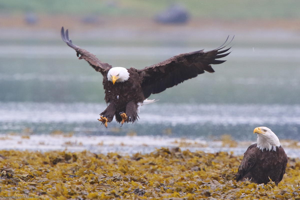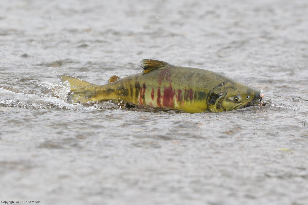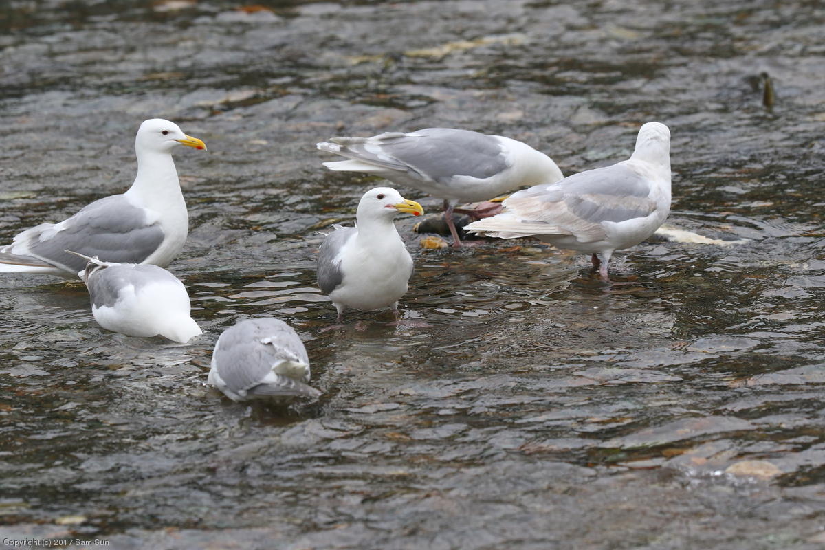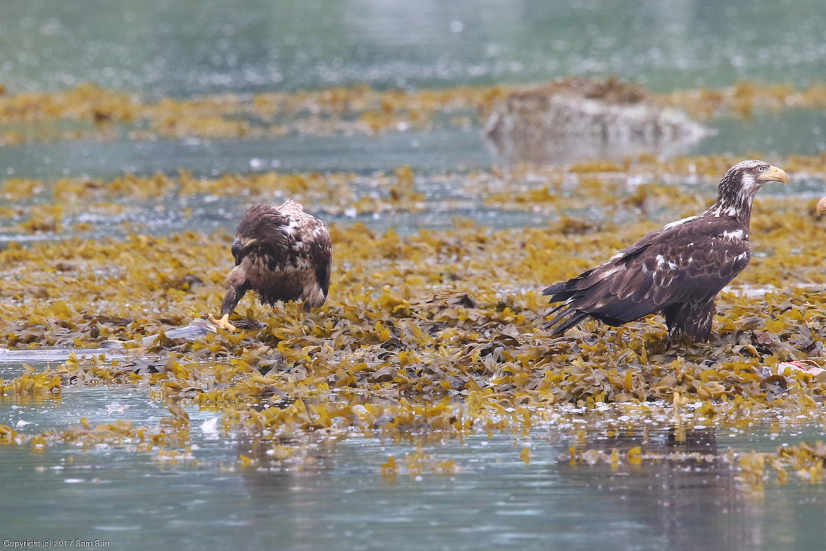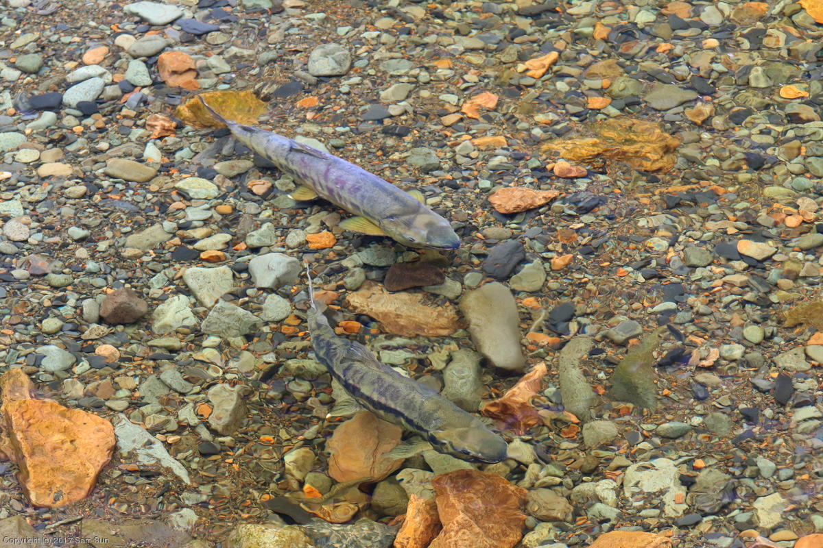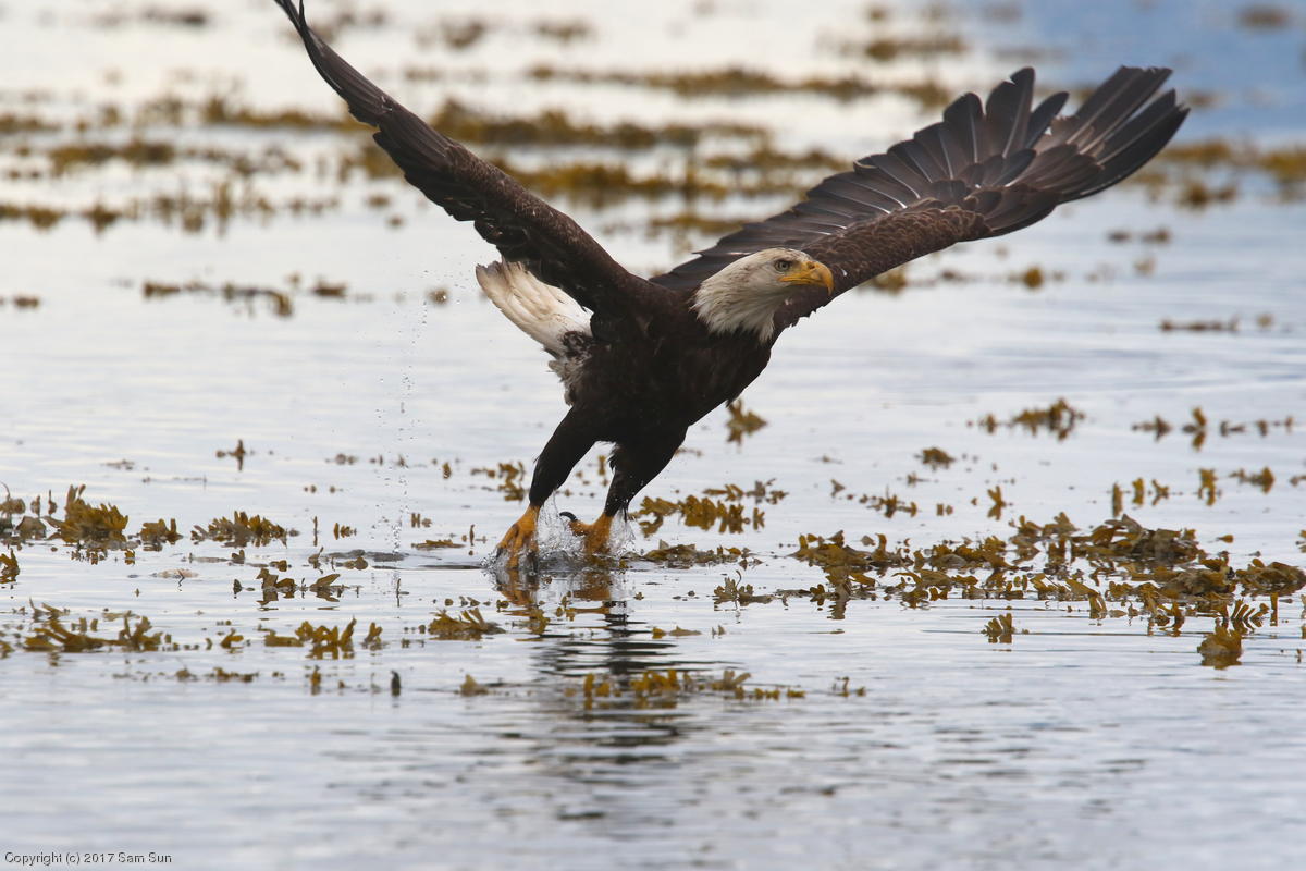 On the way back into town, I found the even more aptly named Salmon Creek. There were a tremendous number of salmon, eagles, and gulls gathered. A 15.9 foot high tide at 9:23p was coming in, which was driving the birds off.