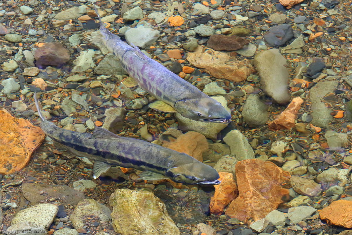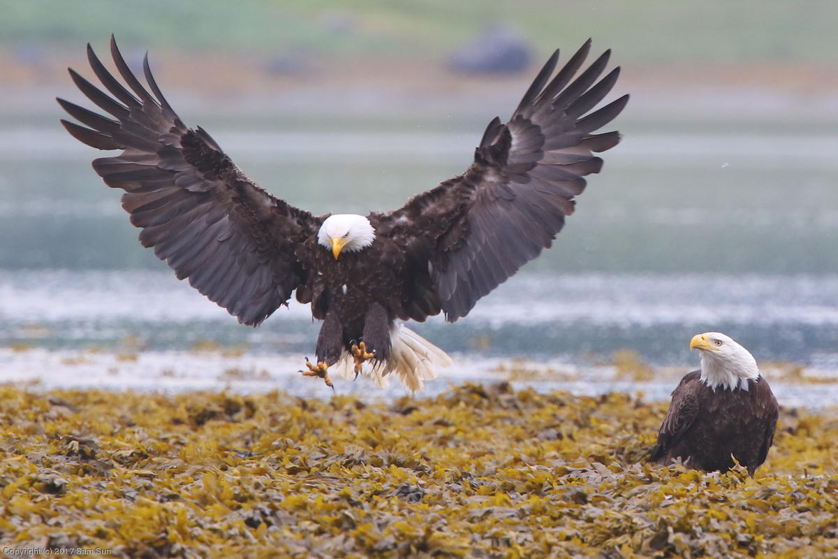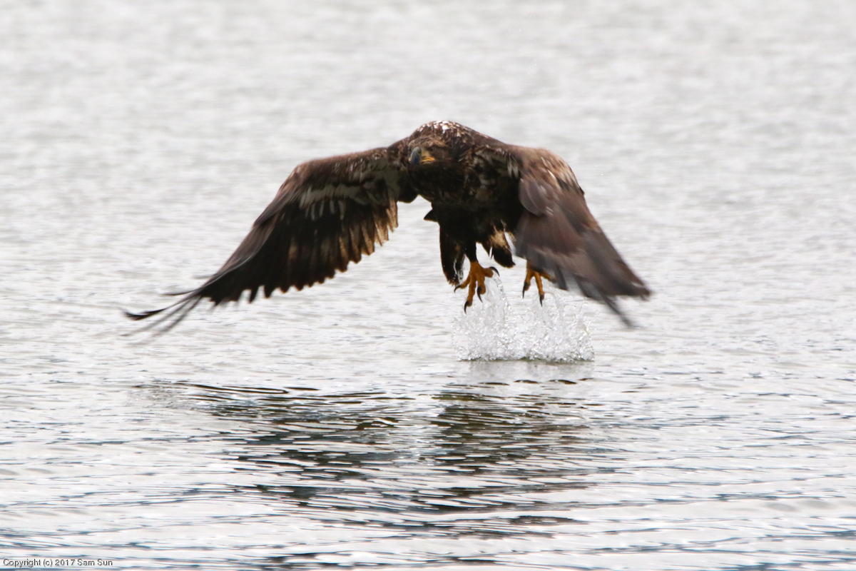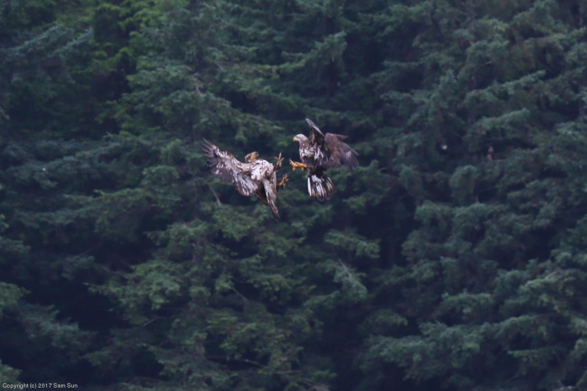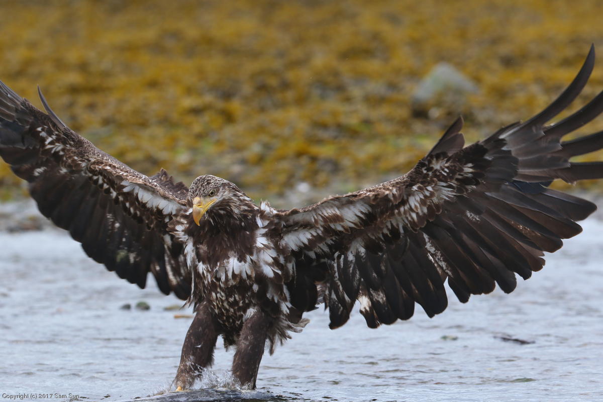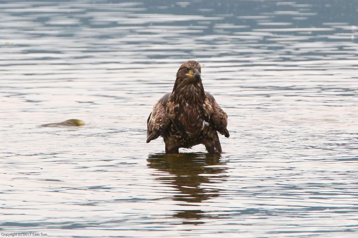 On the way back into town, I found the even more aptly named Salmon Creek. There were a tremendous number of salmon, eagles, and gulls gathered. A 15.9 foot high tide at 9:23p was coming in, which was driving the birds off.