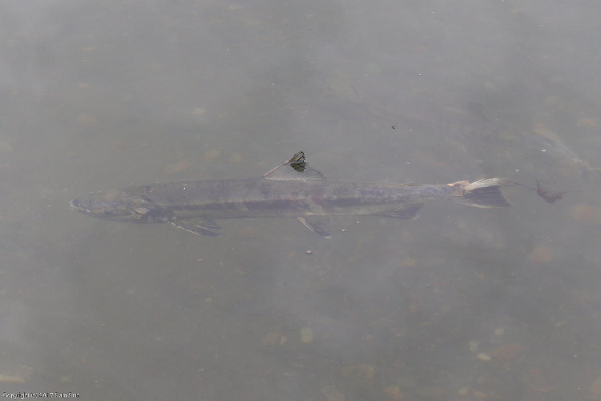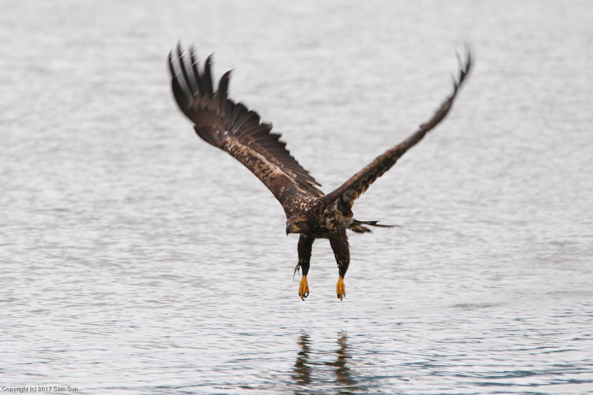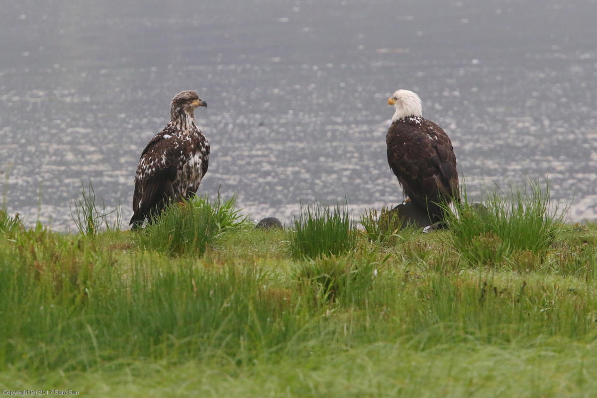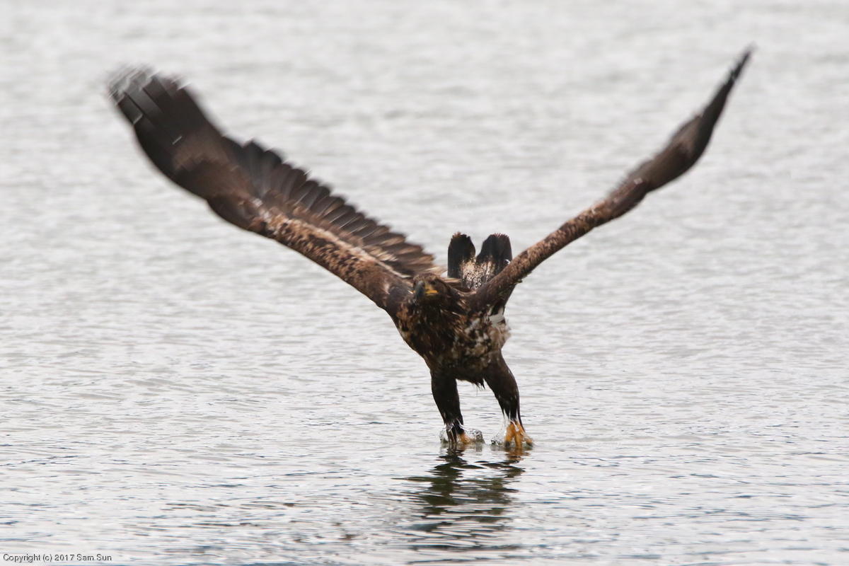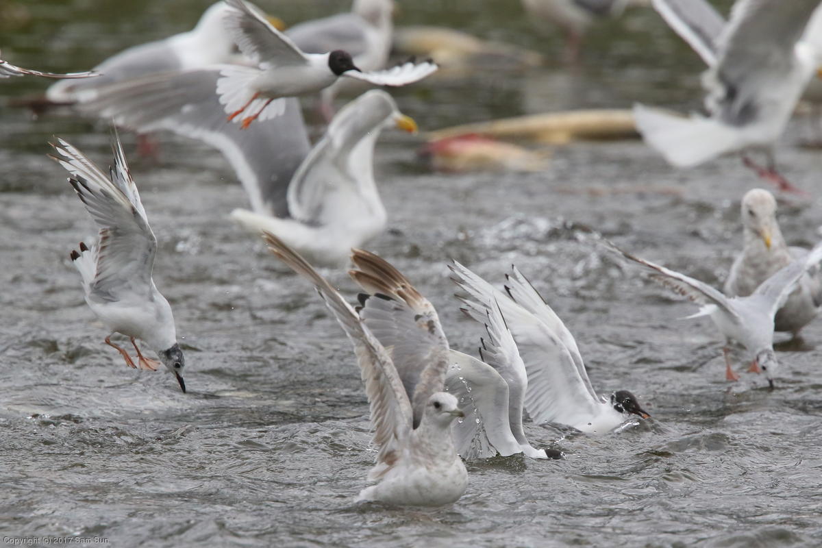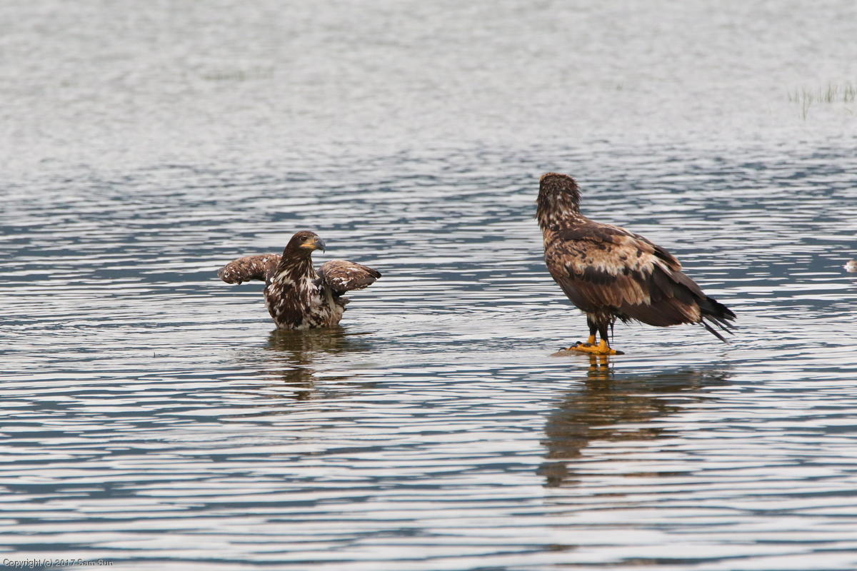 On the way back into town, I found the even more aptly named Salmon Creek. There were a tremendous number of salmon, eagles, and gulls gathered. A 15.9 foot high tide at 9:23p was coming in, which was driving the birds off.