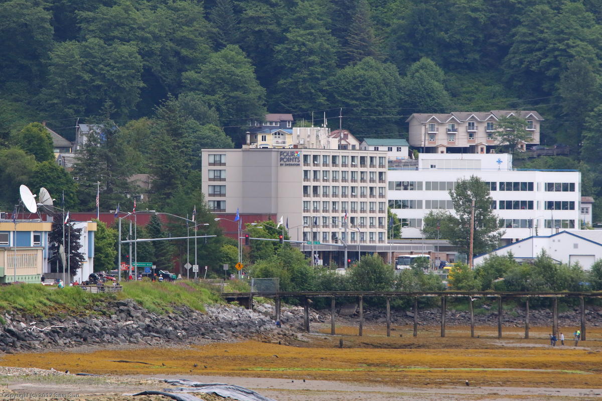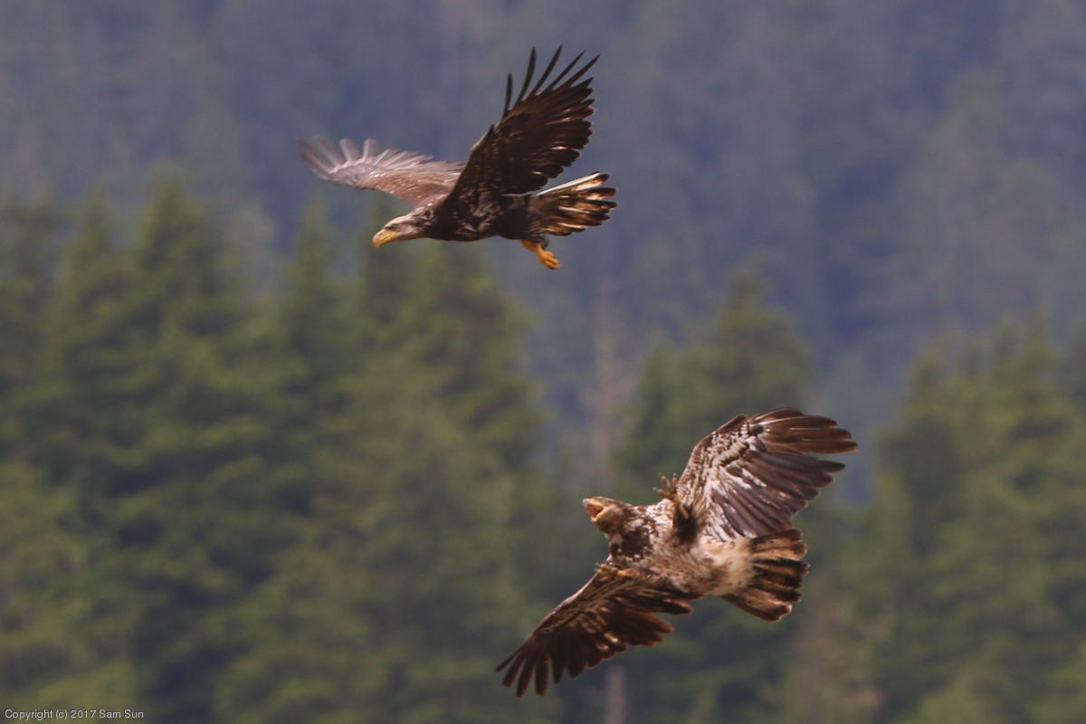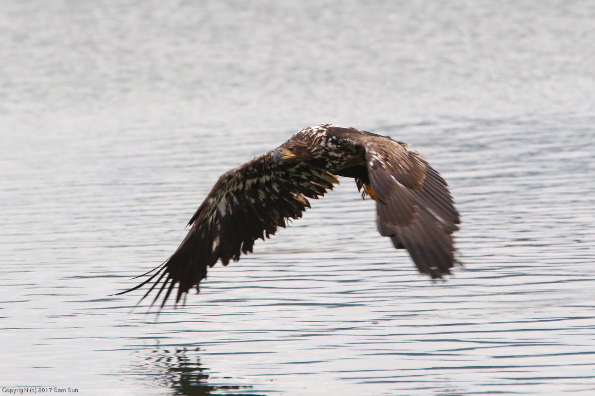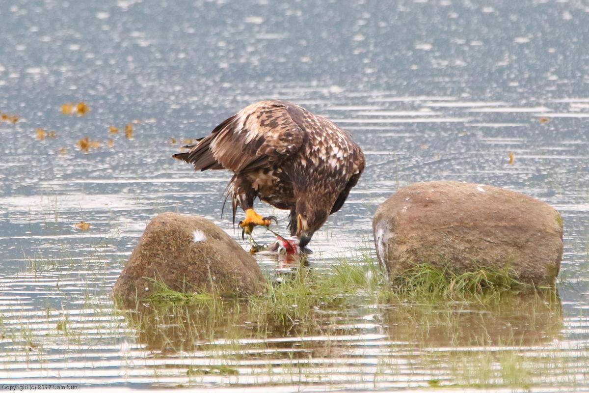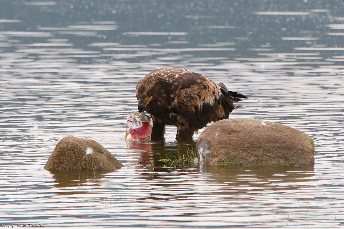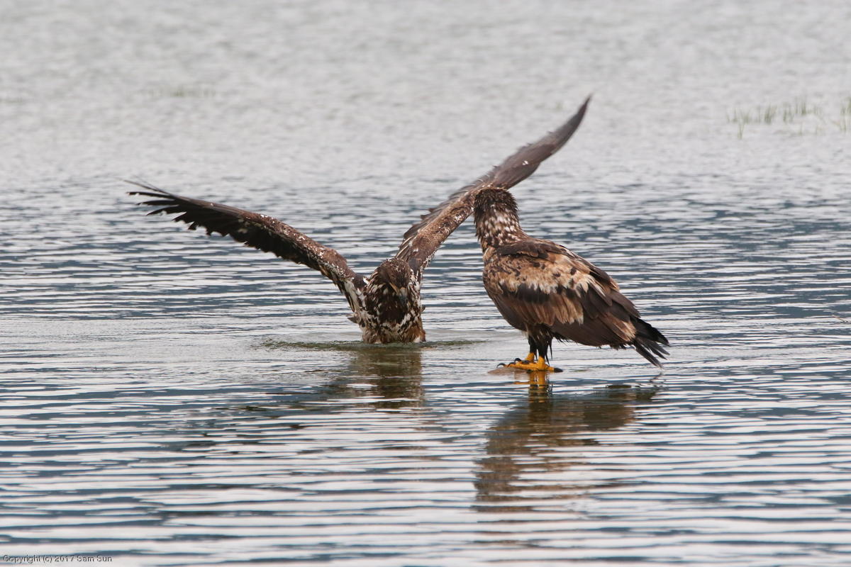 On the way back into town, I found the even more aptly named Salmon Creek. There were a tremendous number of salmon, eagles, and gulls gathered. A 15.9 foot high tide at 9:23p was coming in, which was driving the birds off.