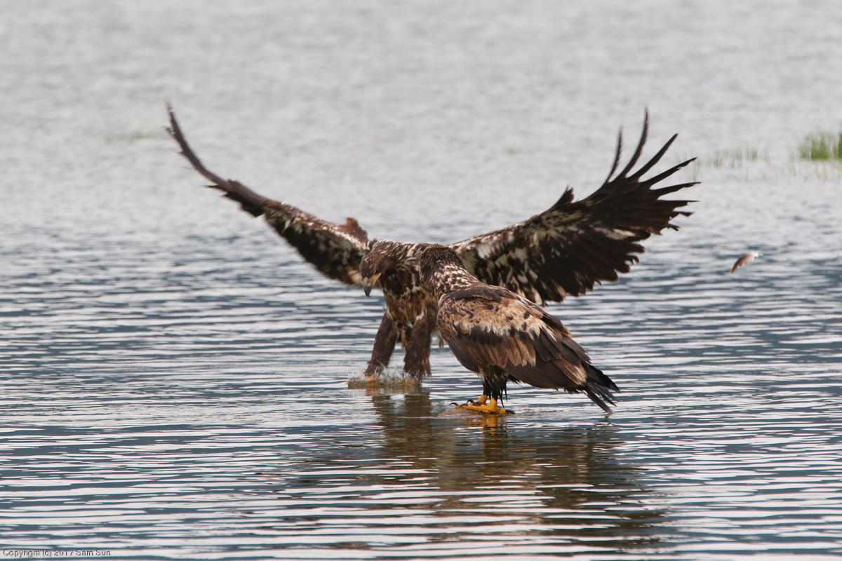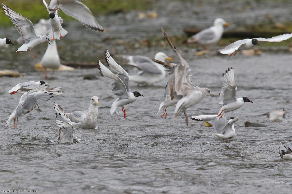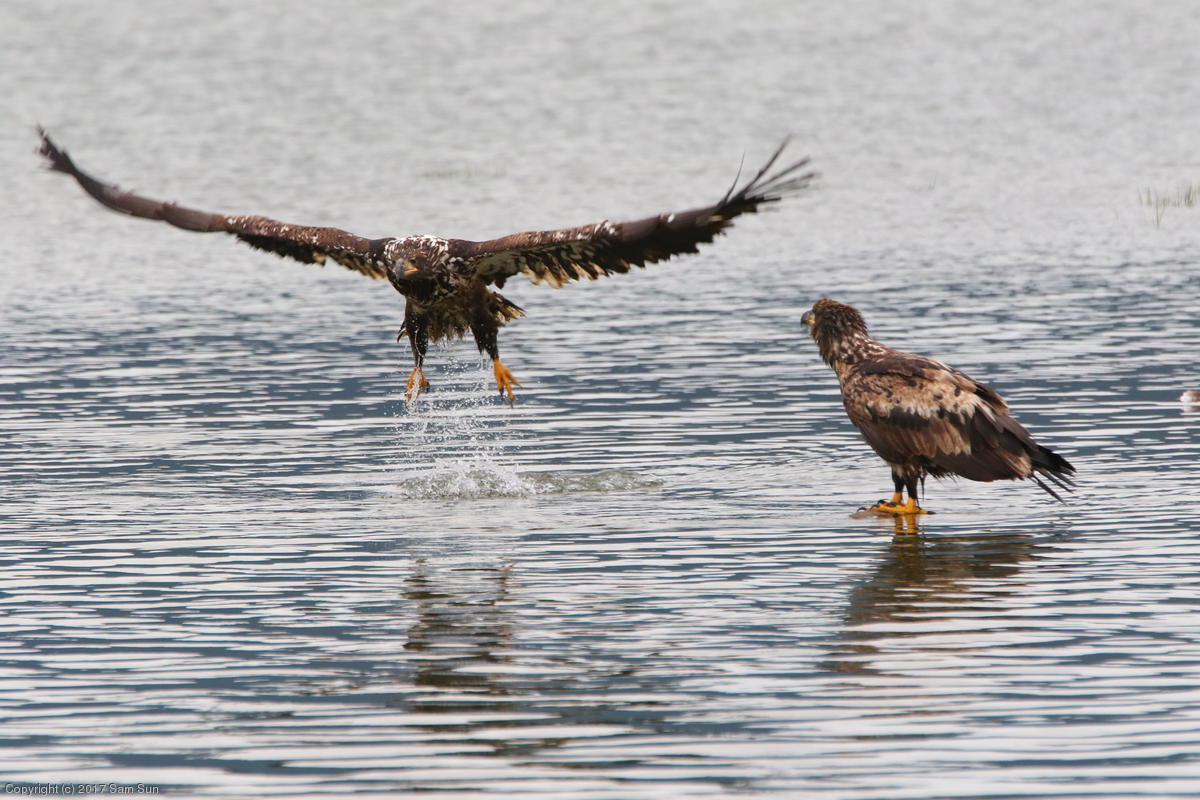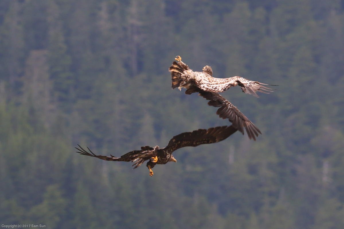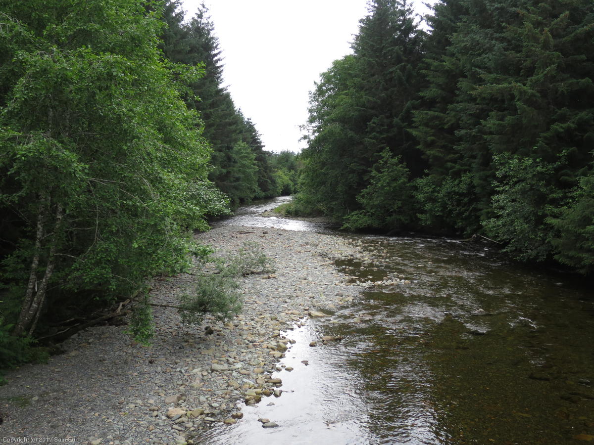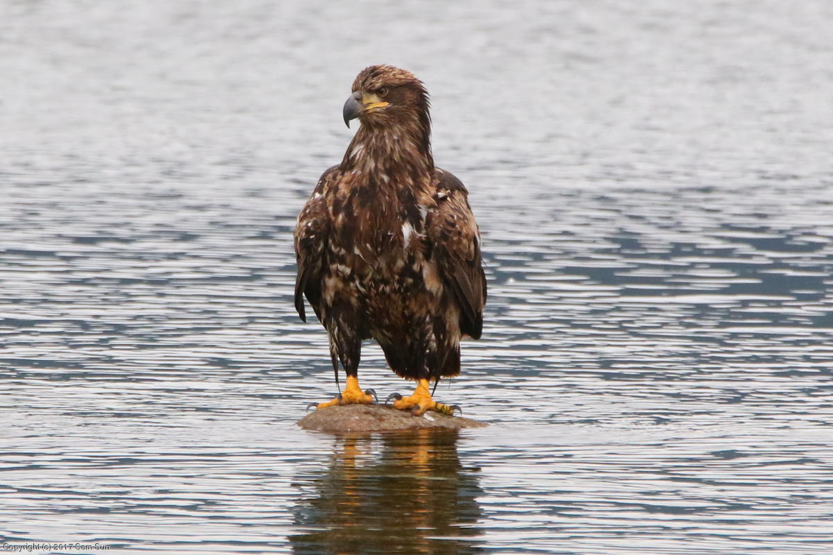 On the way back into town, I found the even more aptly named Salmon Creek. There were a tremendous number of salmon, eagles, and gulls gathered. A 15.9 foot high tide at 9:23p was coming in, which was driving the birds off.