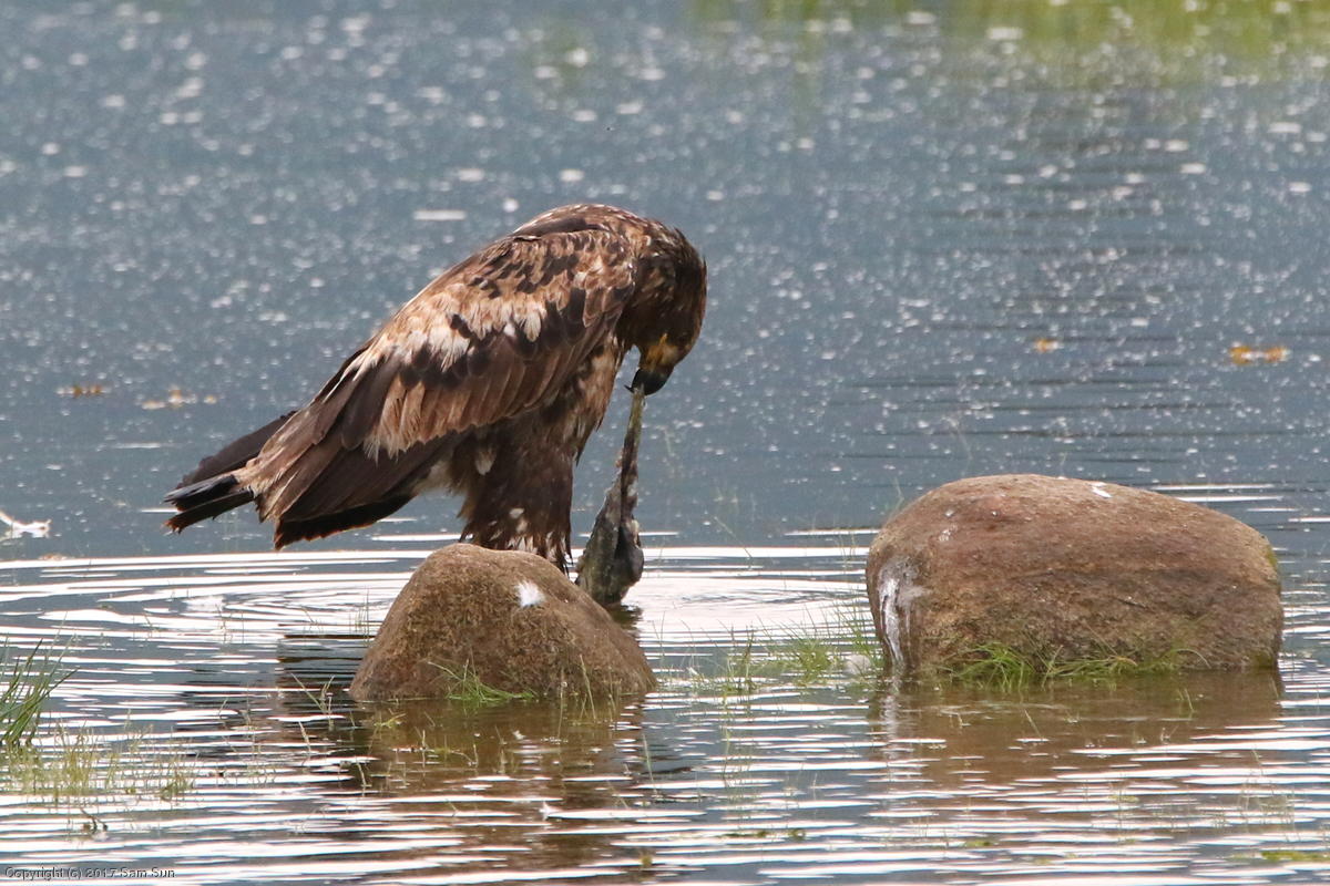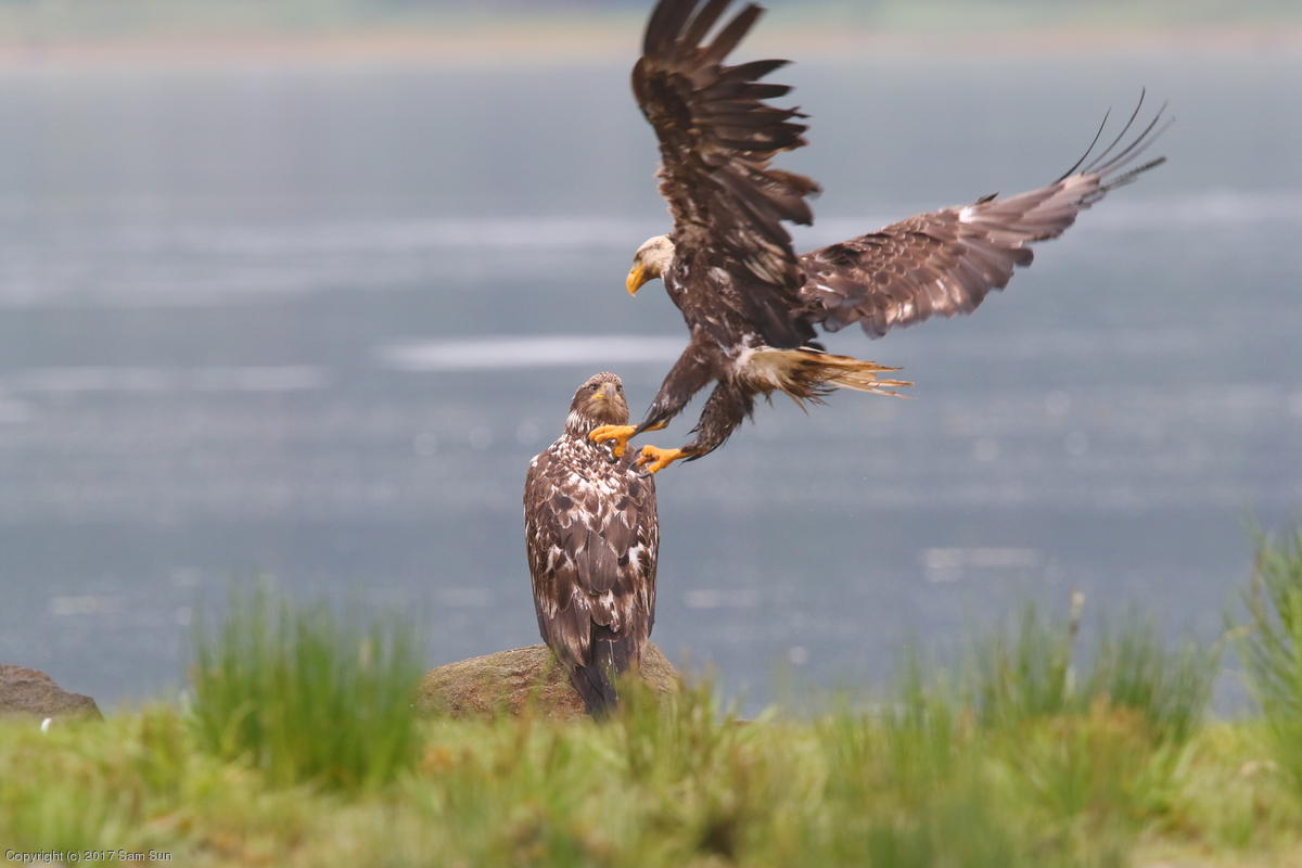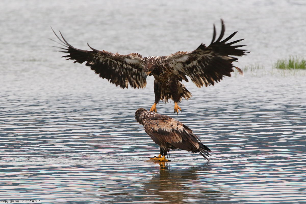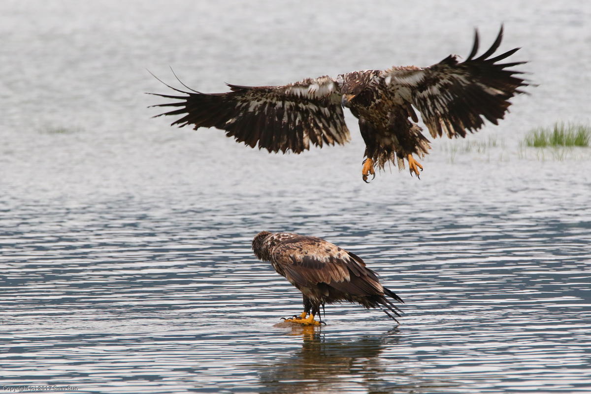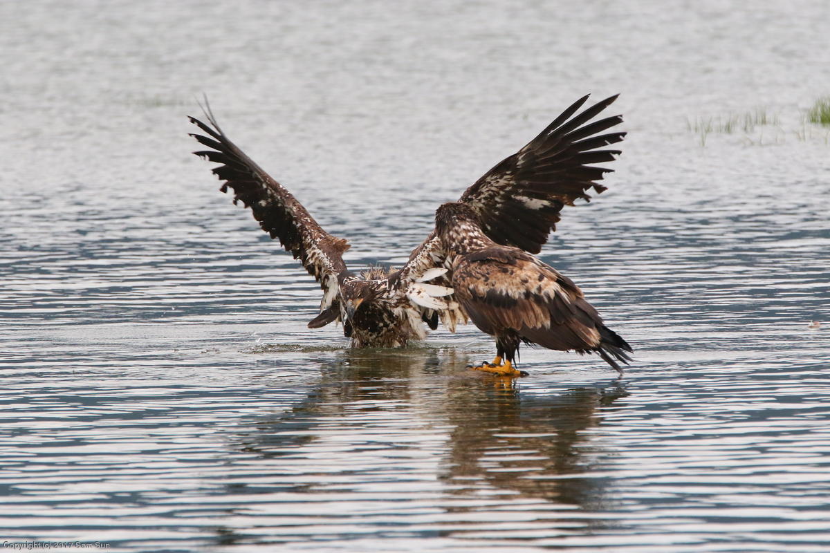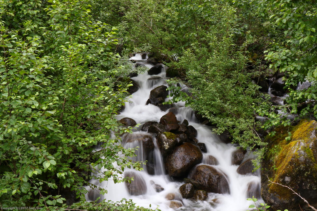On the way back into town, I found the even more aptly named Salmon Creek. There were a tremendous number of salmon, eagles, and gulls gathered. A 15.9 foot high tide at 9:23p was coming in, which was driving the birds off.