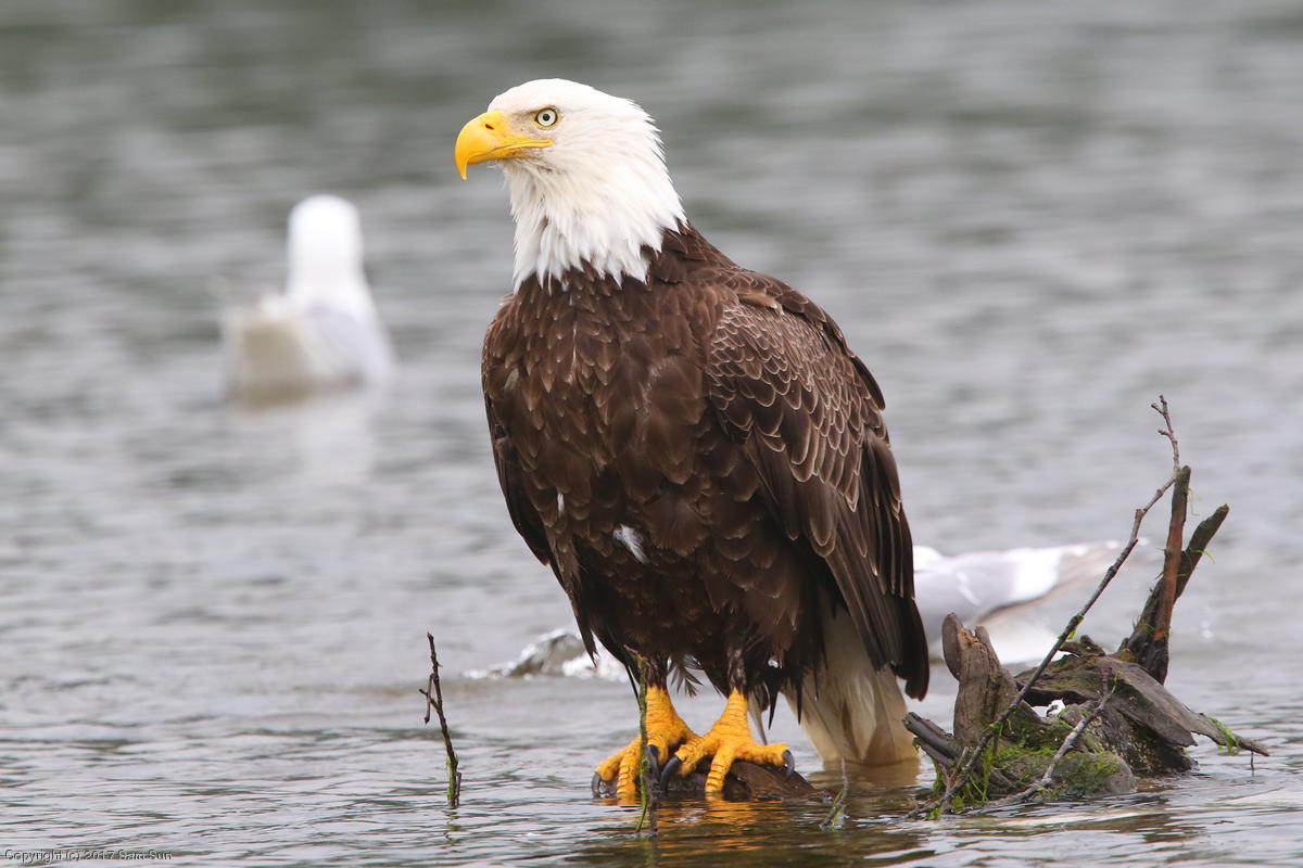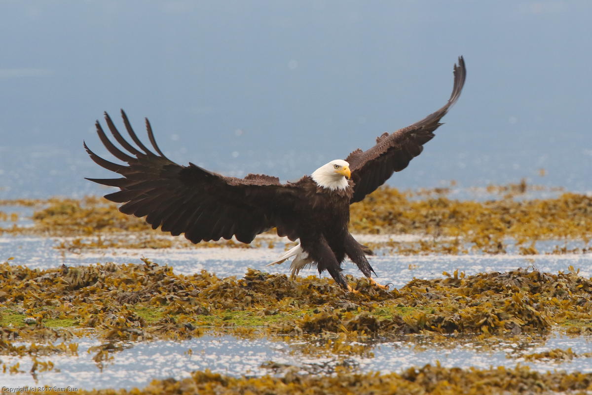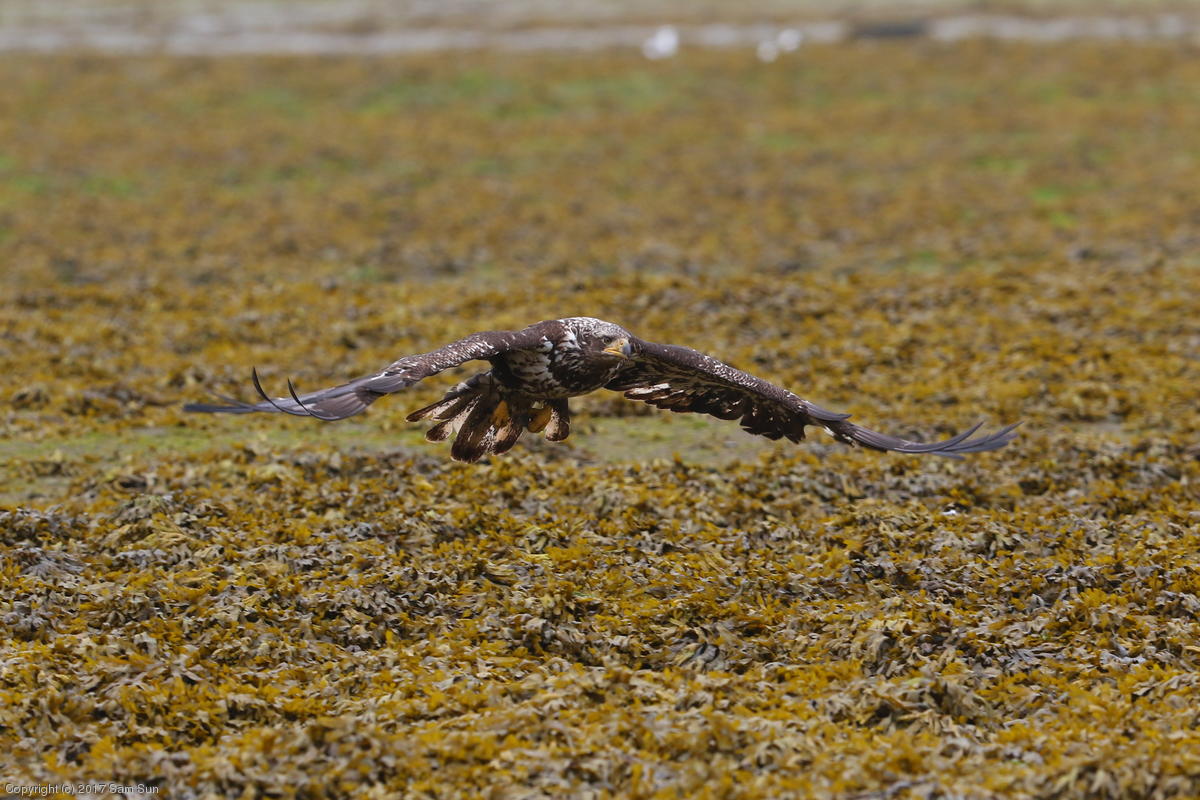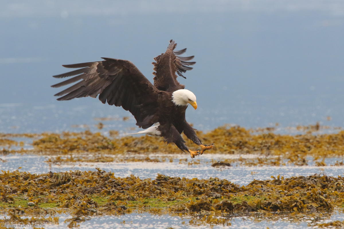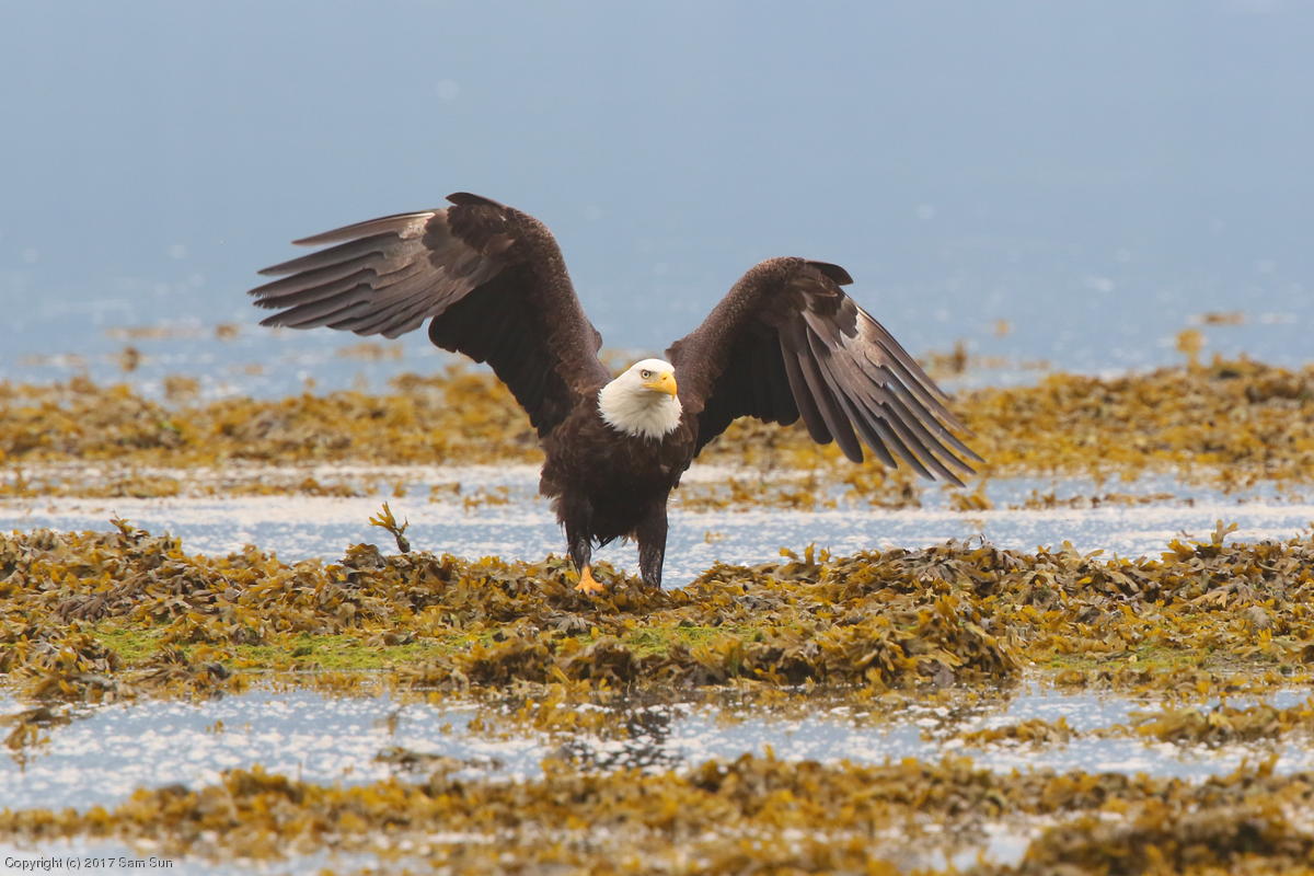 I spent much of the day at Salmon Creek. A 12.9 foot high tide at 10:28a was to be followed by a 3.5 foot low tide at 4:12p, so after all the eagles left in the morning, I did some gift shopping in town and came back as the tide was going back out.