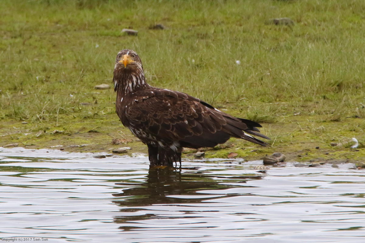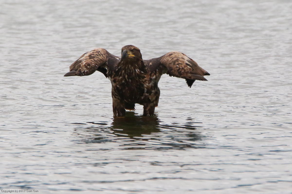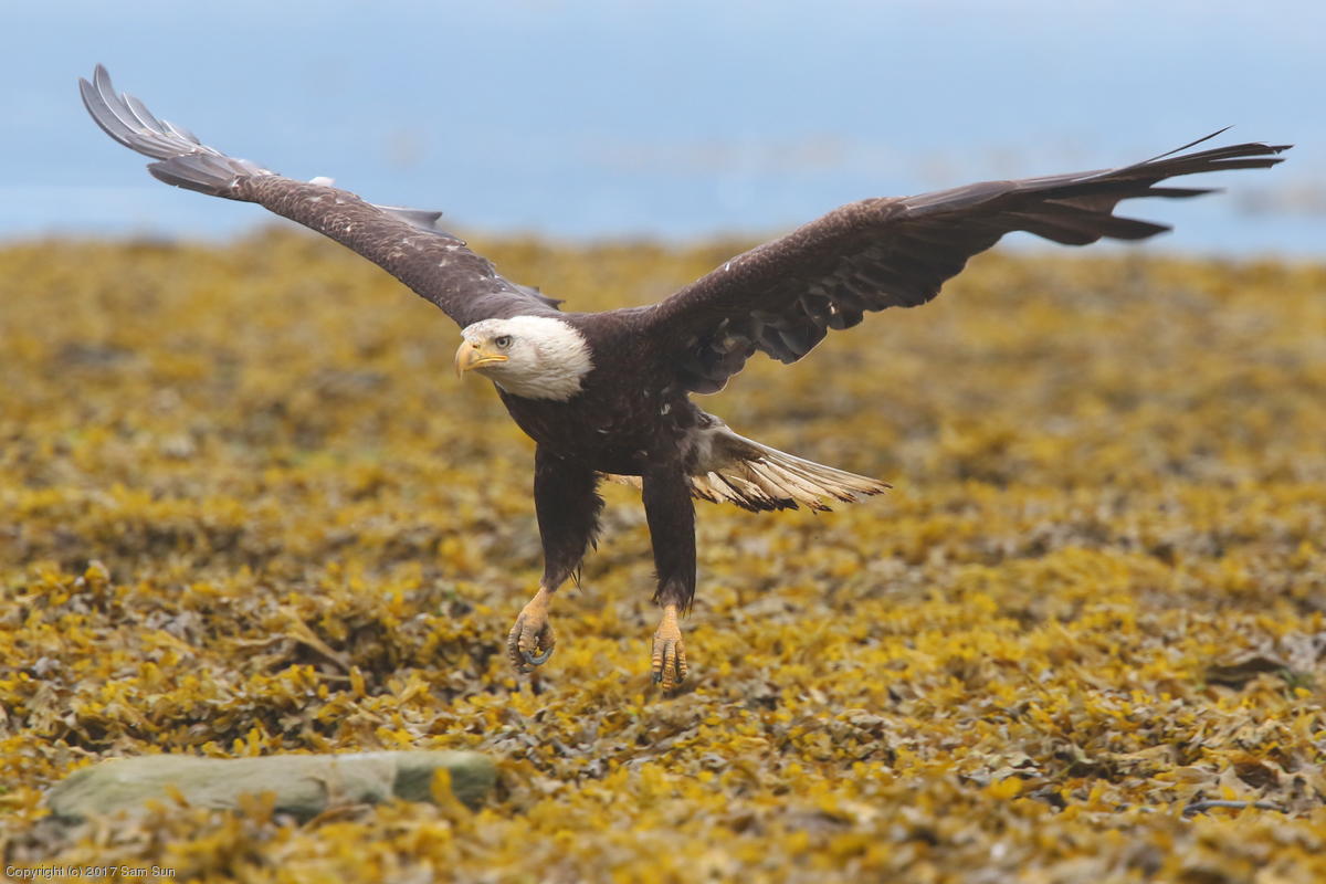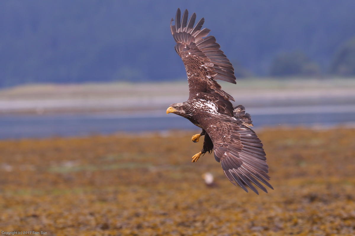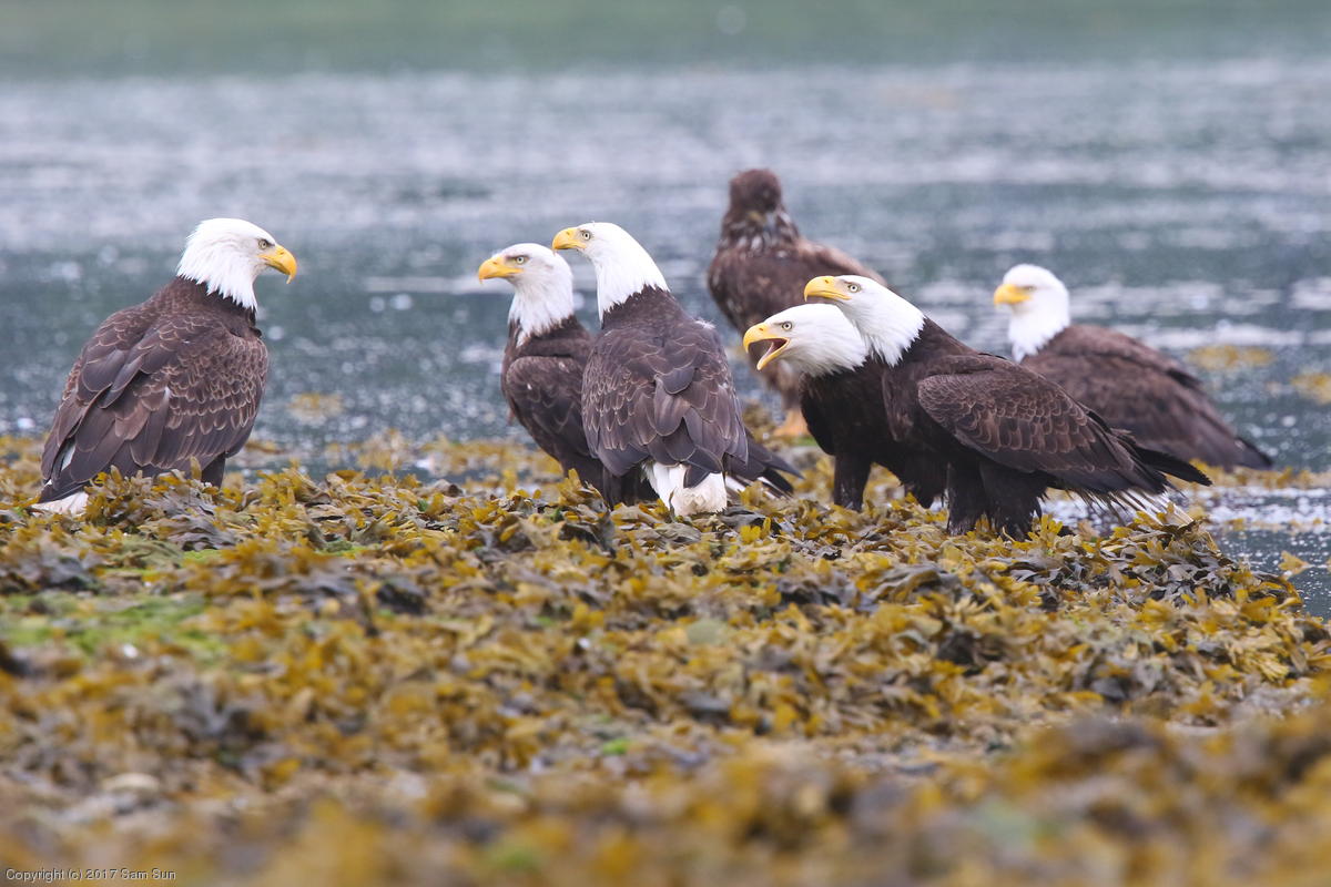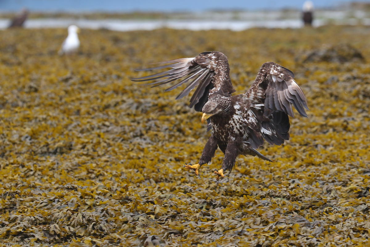 I spent much of the day at Salmon Creek. A 12.9 foot high tide at 10:28a was to be followed by a 3.5 foot low tide at 4:12p, so after all the eagles left in the morning, I did some gift shopping in town and came back as the tide was going back out.