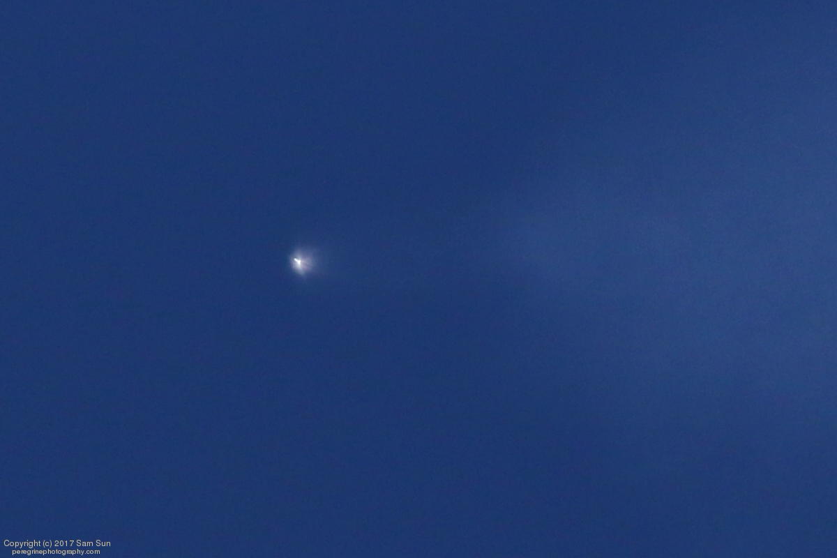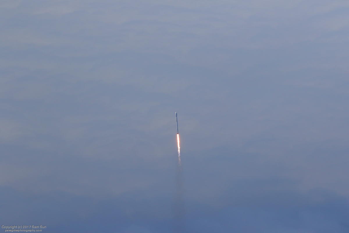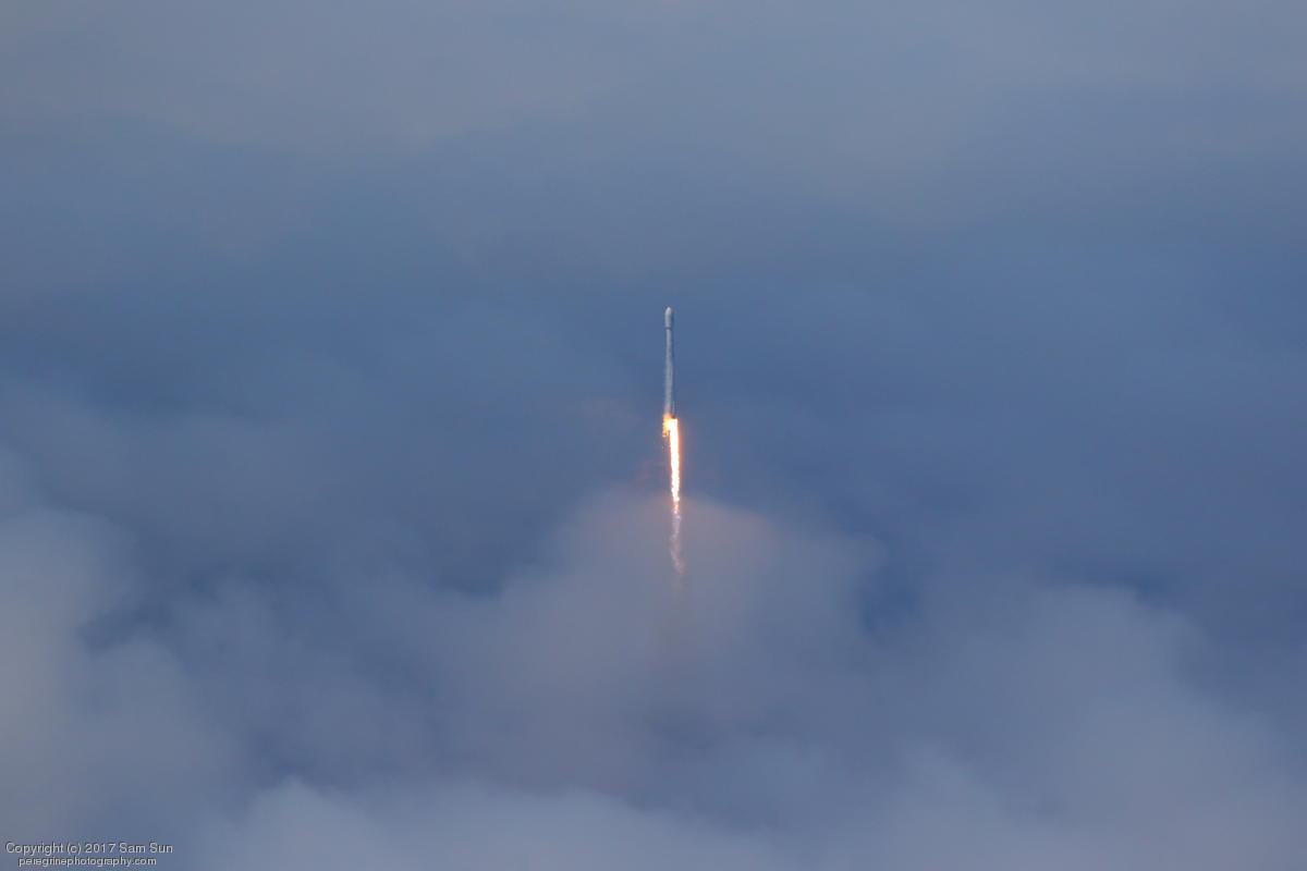 I missed a launch time change (from 11:50 to 11:51A PDT), so I was looking the wrong way when the Falcon 9 emerged out of the cloud deck :(